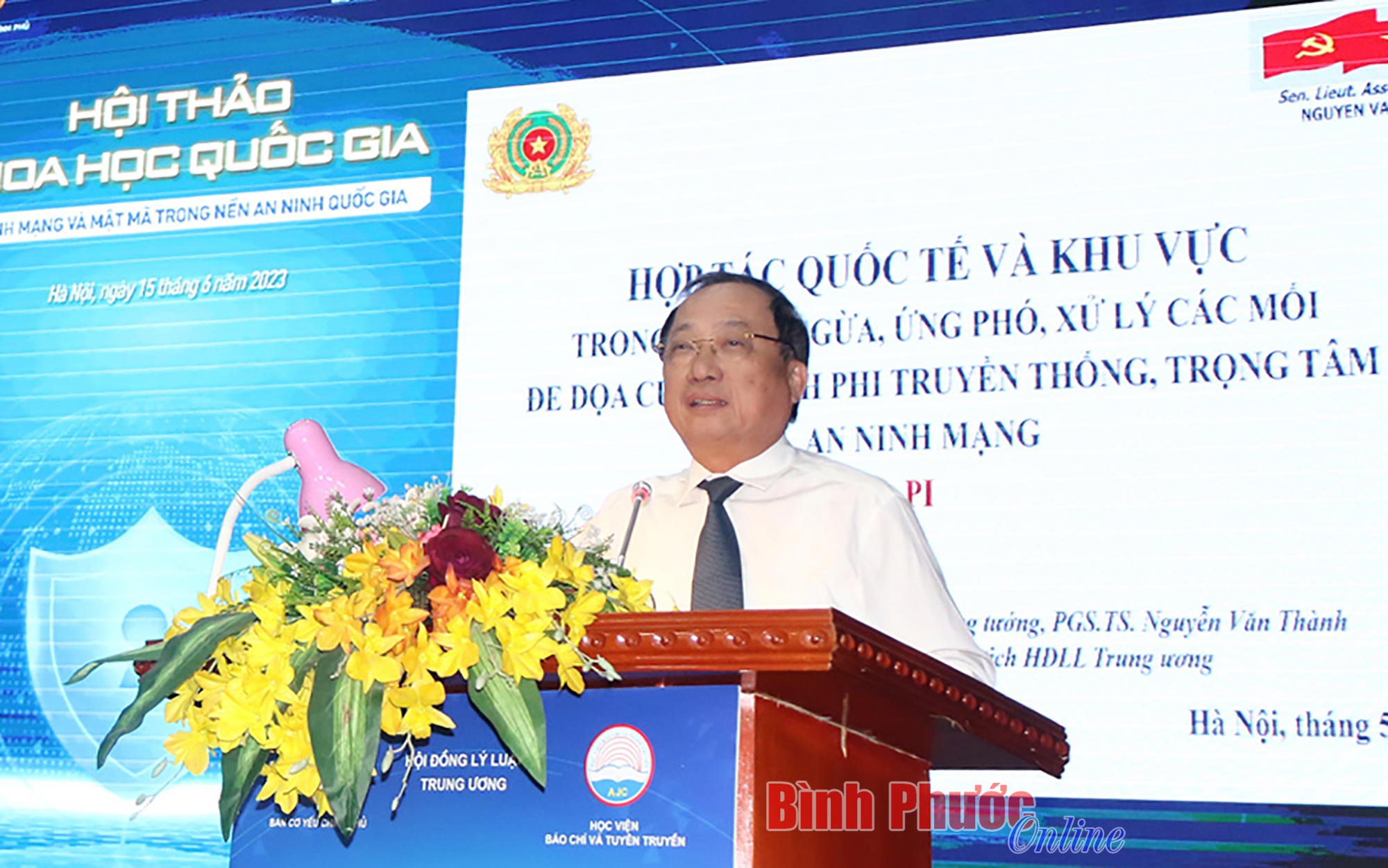 Trong tham luận của mình, Thượng tướng, PGS,TS. Nguyễn Văn Thành, nguyên Ủy viên Trung ương Đảng, Phó Chủ tịch chuyên trách Hội đồng Lý luận Trung ương, nguyên Thứ trưởng Bộ Công an đã nêu một số định hướng giải pháp nhằm chủ động phòng ngừa, ứng phó, xử lý các mối đe dọa an ninh phi truyền thống, trọng tâm an ninh mạng như: Nâng cao nhận thức về an ninh thông tin, an ninh mạng và bảo đảm an ninh thông tin, an ninh mạng; Tăng cường giáo dục, bồi dưỡng, nâng cao ý thức của cán bộ, đảng viên và quần chúng nhân dân; Chú trọng tuyên truyền, phổ biến cho học sinh, sinh viên về các nguy cơ, các yếu tố gây mất an ninh, đe dọa gây mất an ninh thông tin; Nghiên cứu xác lập chủ quyền quốc gia trên không gian mạng, bảo đảm giữ vững độc lập, tự chủ, chủ quyền và lợi ích quốc gia trên không gian thông tin quốc tế; Bảo vệ và khai thác có hiệu quả tài nguyên thông tin quốc gia.