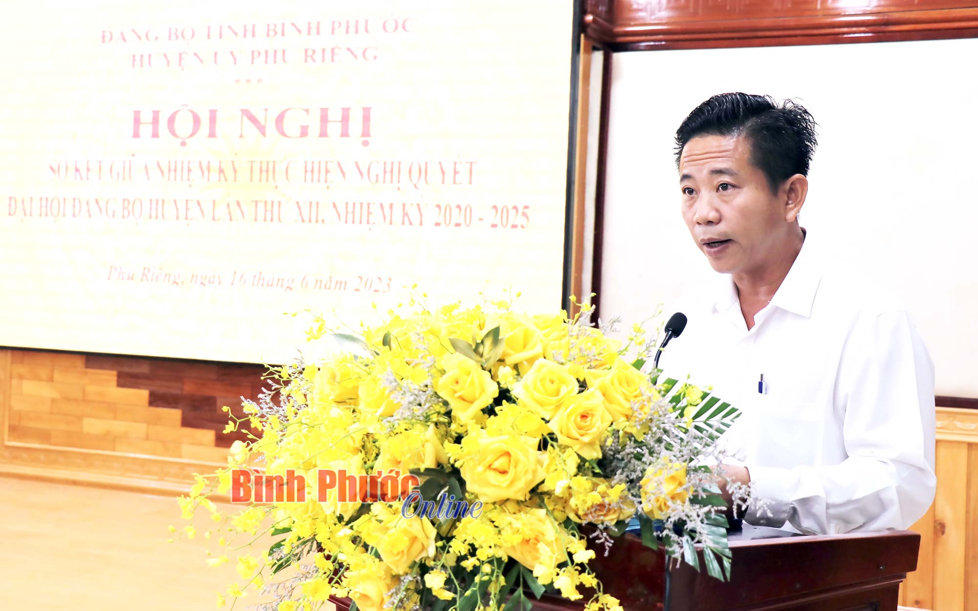 Gợi mở về những nhiệm vụ, giải pháp trong thời gian tới, Ủy viên ban Thường vụ, Trưởng Ban Tổ chức Tỉnh ủy Nguyễn Hồng Trà nhấn mạnh: Nguồn lực con người là điều kiện quan trọng, cần thiết để thực hiện thành công các nhiệm vụ mà nghị quyết đề ra, vì vậy, Ban Thường vụ Huyện ủy Phú Riềng cần chú trọng bồi dưỡng, đào tạo nâng cao chuyên môn nghiệp vụ cho cán bộ công chức, viên chức để nâng cao hiệu quả công việc. Trong công tác xây dựng Đảng cần đẩy mạnh xây dựng, chỉnh đốn Đảng và hệ thống chính trị; kiên quyết ngăn chặn, đẩy lùi, xử lý nghiêm cán bộ, đảng viên suy thoái về tư tưởng chính trị, đạo đức, lối sống, biểu hiện "tự diễn biến", "tự chuyển hóa".