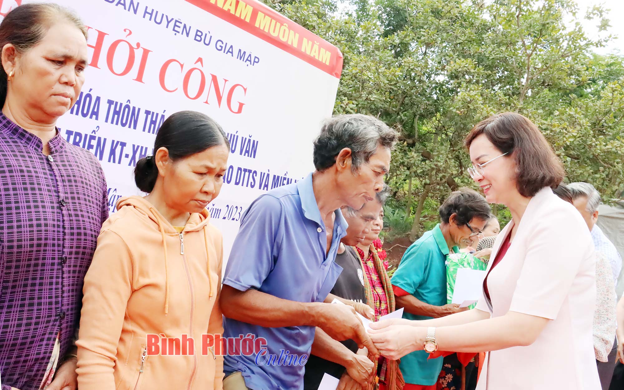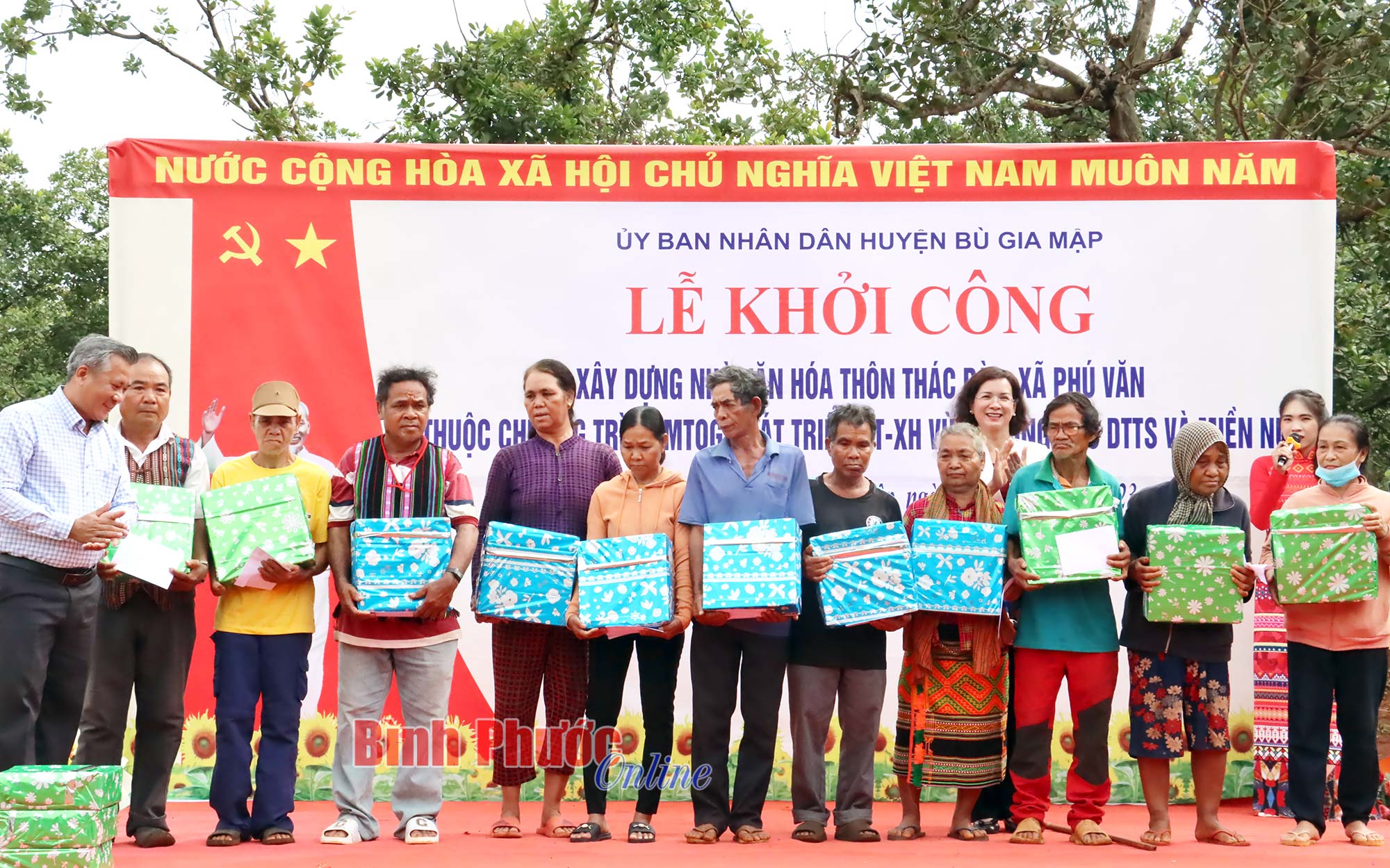 Sáng nay (16-6), Ủy viên Ban thường vụ Tỉnh ủy, Phó chủ tịch UBND tỉnh Trần Tuyết Minh dự lễ khởi công xây dựng nhà văn hóa thôn Thác Dài, xã Phú Văn, huyện Bù Gia Mập. Công trình thuộc chương trình Mục tiêu quốc gia phát triển kinh tế - xã hội vùng đồng bào dân tộc thiểu số và miền núi, giai đoạn 2021-2030. Dự lễ có Đại tá Nguyễn Duy Dương, Chính ủy Đoàn Kinh tế - Quốc phòng 778 và đại diện lãnh đạo một số sở, ban, ngành của tỉnh.