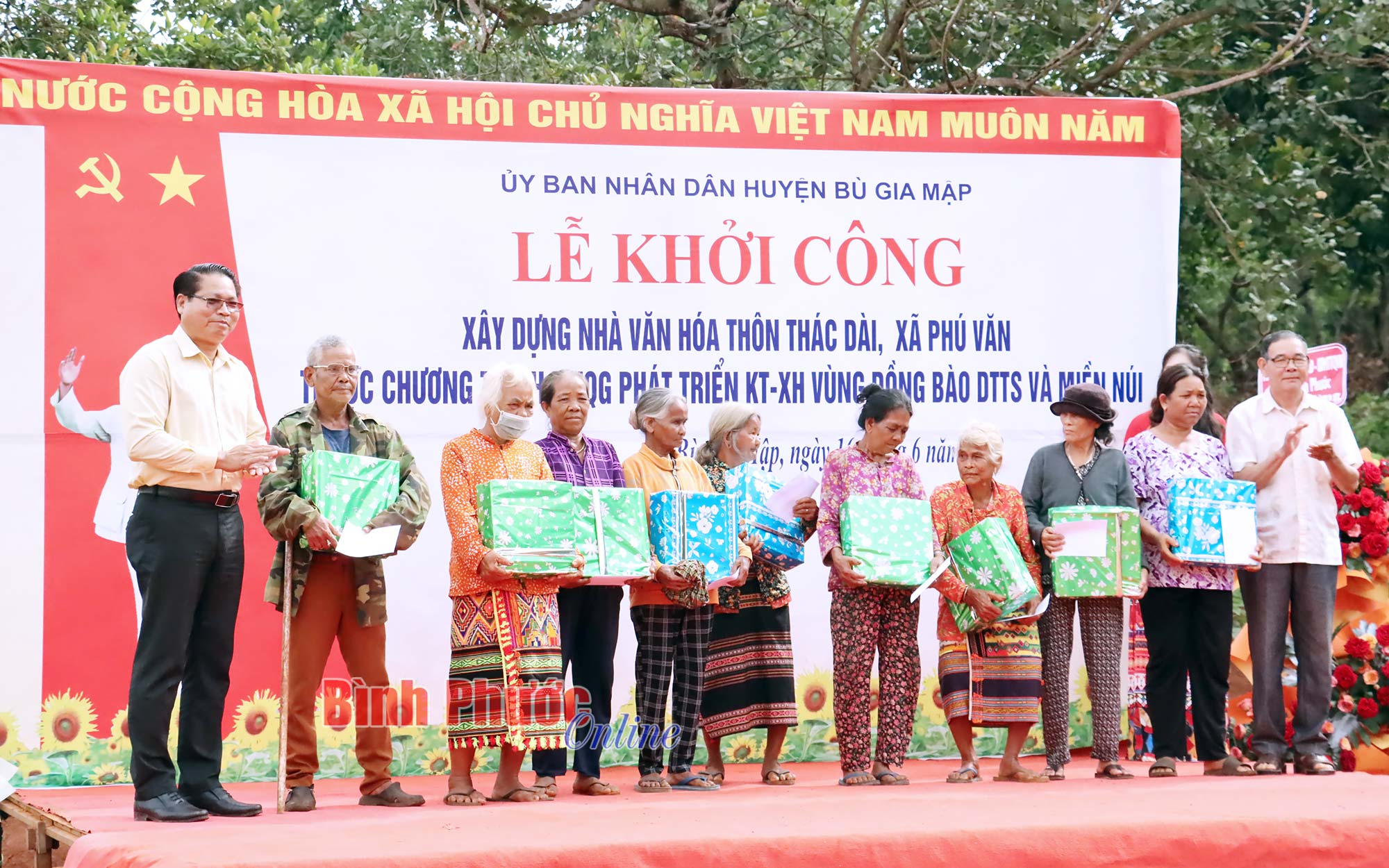 Dịp này, UBND tỉnh Bình Phước tặng 20 phần quà cho những hộ nghèo. Đồng hành với nhân dân và chính quyền xã Phú Văn, Đoàn Kinh tế - quốc phòng 778 đã hỗ trợ công trình hơn 250 triệu đồng.