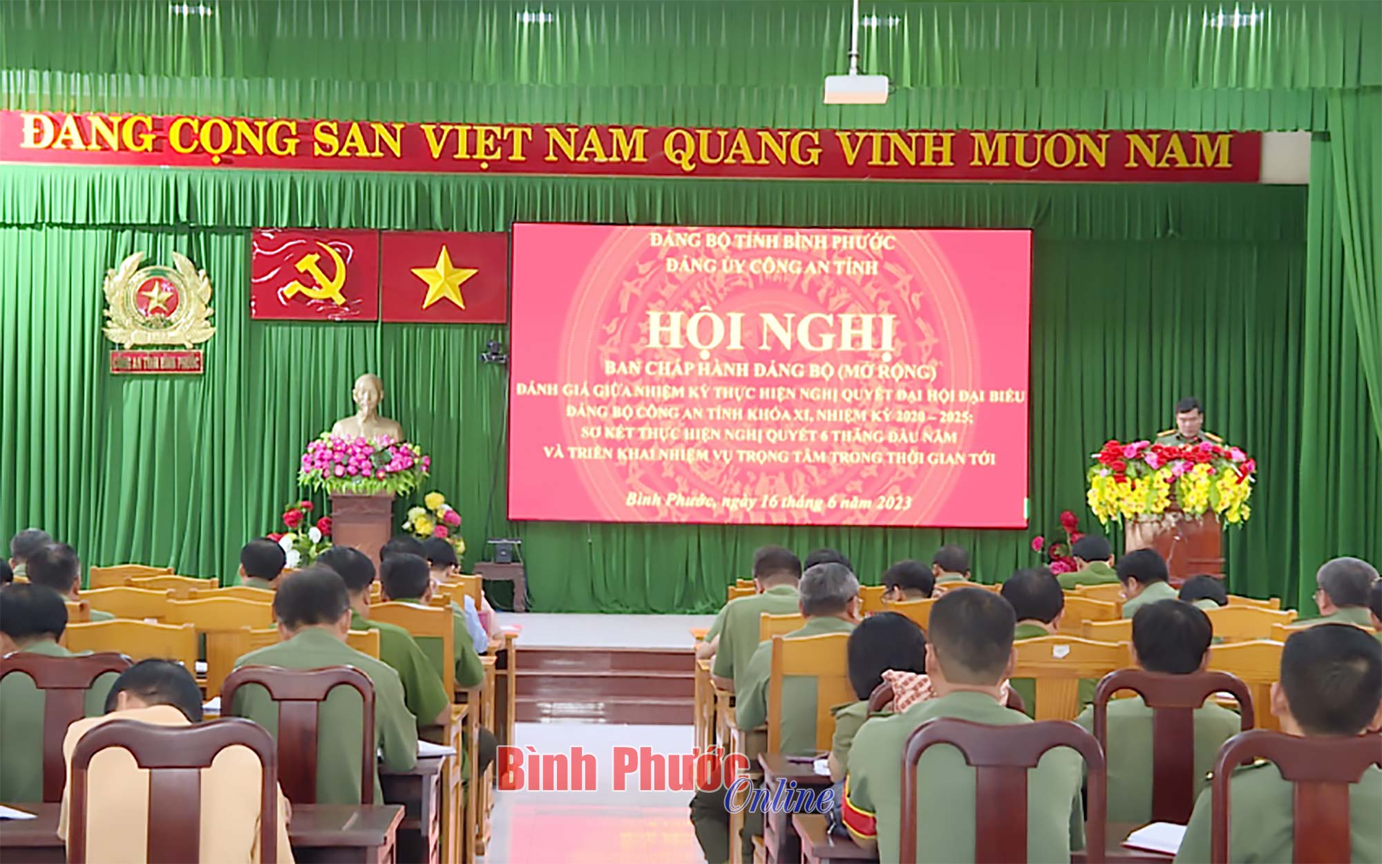 Các đại biểu dự hội nghị sơ kết giữa nhiệm kỳ thực hiện Nghị quyết Đại hội đại biểu Đảng bộ Công an tỉnh khóa XI, nhiệm kỳ 2020-2025