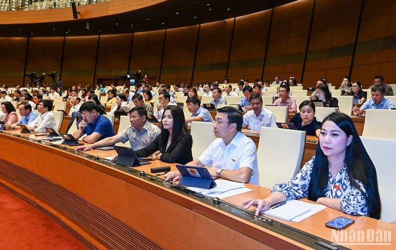 Đại biểu Quốc hội biểu quyết thông qua Nghị quyết. (Ảnh: DUY LINH)