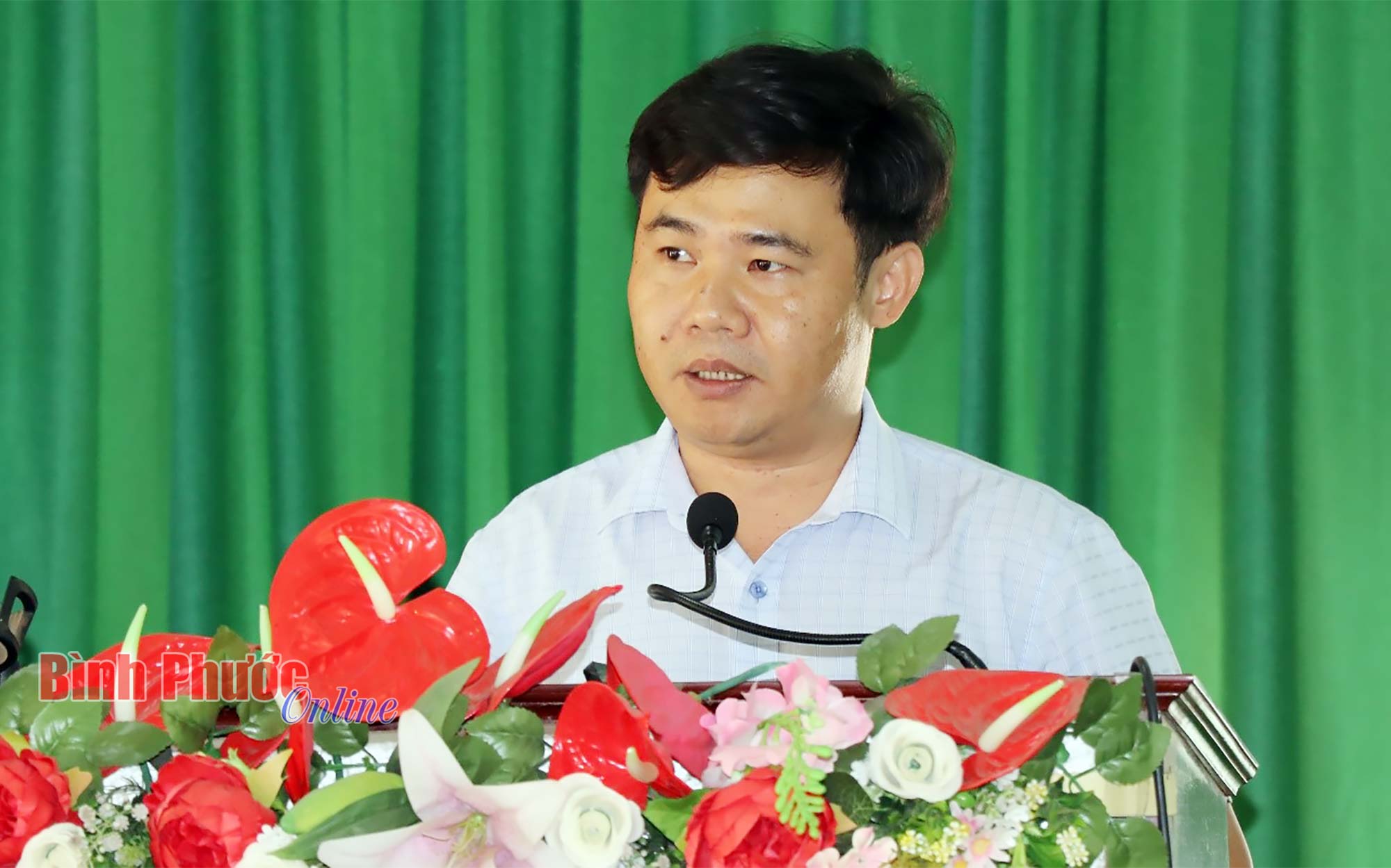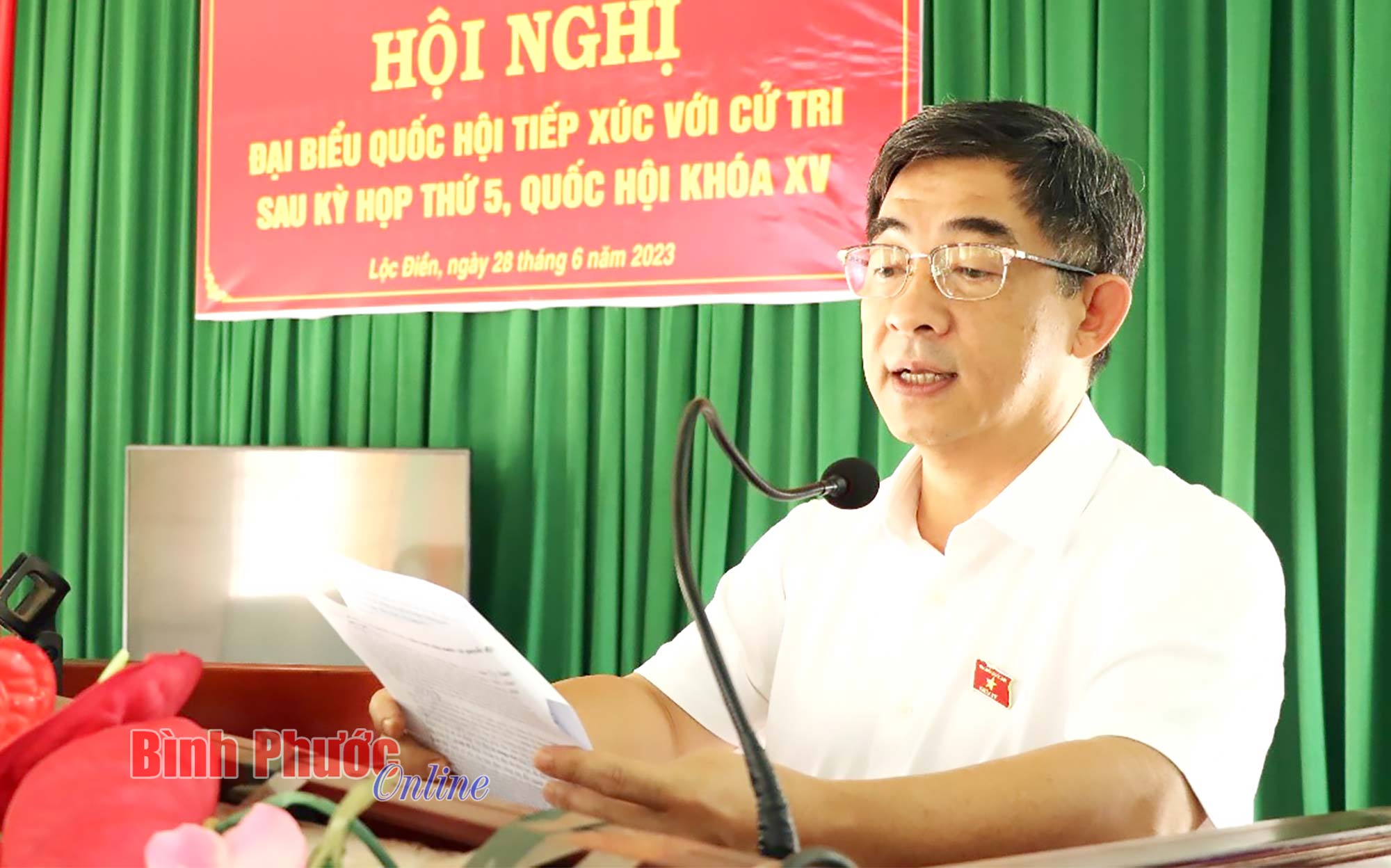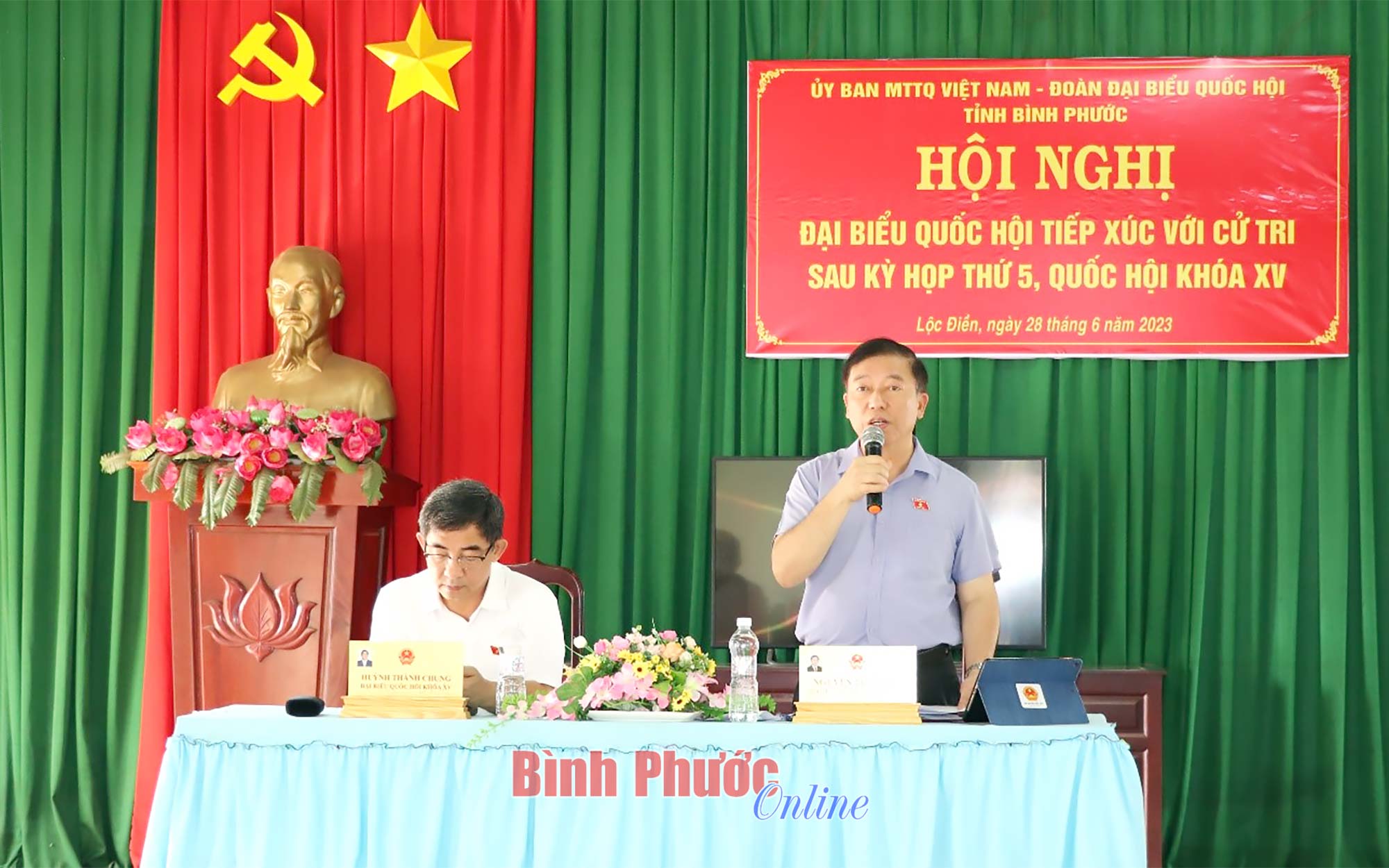 Đại biểu Huỳnh Thành Chung thông tin đến cử tri huyện Lộc Ninh kết quả kỳ họp thứ 5, Quốc hội khóa XV và hoạt động của Đoàn đại biểu Quốc hội tỉnh tại kỳ họp