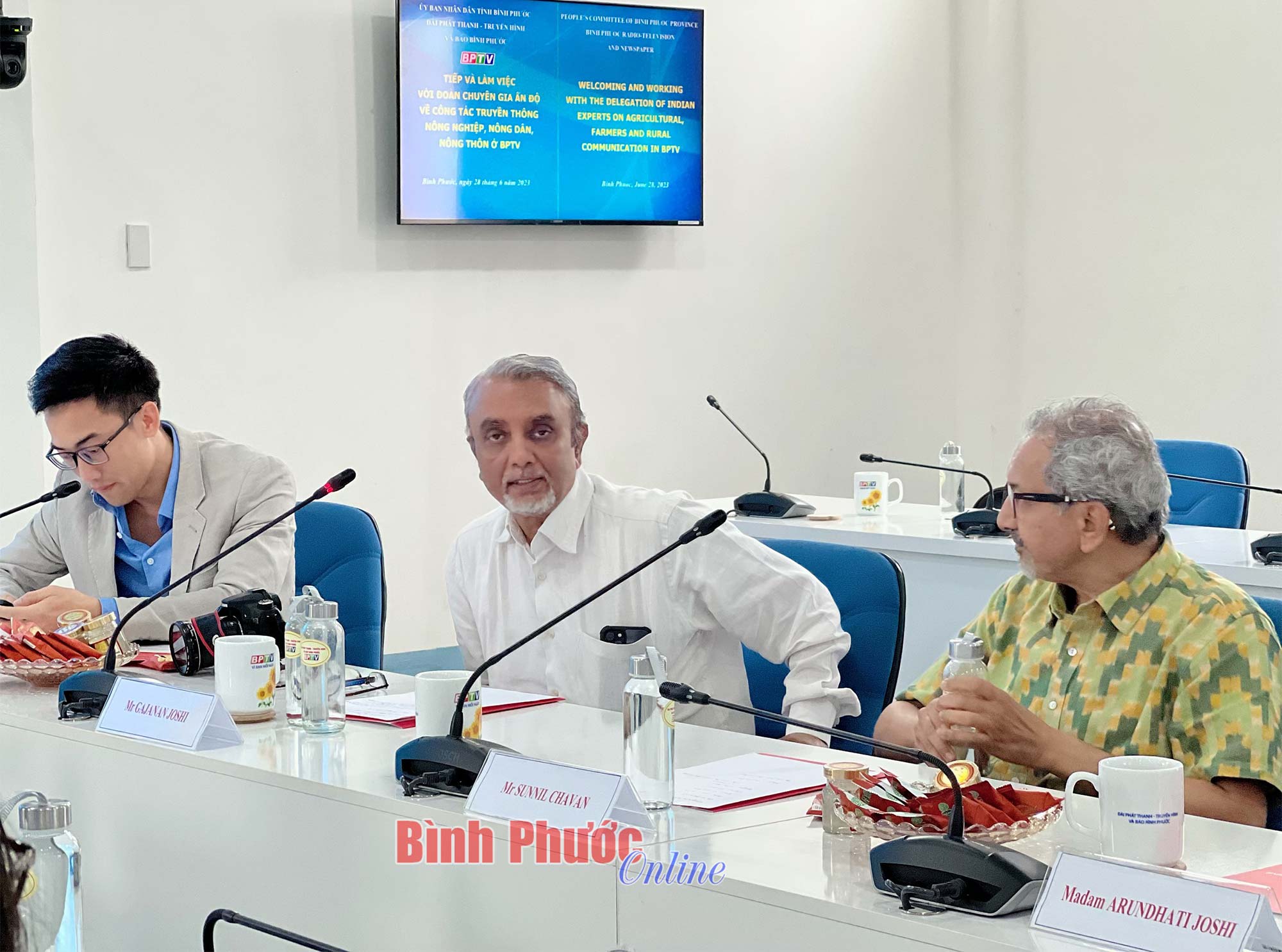 Phát biểu tại buổi làm việc, ông KUMAR KETKAR, Nhà báo, Tổng Biên tập báo, thành viên Thượng Nghị viện - Ủy viên Ủy ban Đối ngoại Quốc hội Ấn Độ nhấn mạnh: Sự trao đổi, chia sẻ chân tình của BPTV về công tác truyền thông trong lĩnh vực nông nghiệp, nông dân, nông thôn sẽ là những thông tin cần thiết cho đoàn trong công tác truyền thông về lĩnh vực nông nghiệp, cũng như thực hiện cuộc cách mạng xanh của Ấn Độ; đồng thời tạo sự kết nối, hợp tác của 2 đơn vị.