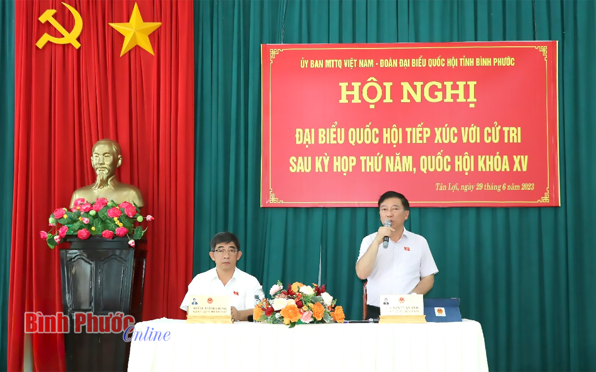 Tại buổi tiếp xúc, thay mặt Đoàn đại biểu Quốc hội tỉnh, đại biểu Nguyễn Tuấn Anh cảm ơn những ý kiến tâm huyết, trách nhiệm của cử tri dành cho Đoàn đại biểu Quốc hội tỉnh, đồng thời cùng với ghi nhận, tiếp thu kiến nghị để chuyển đến các cơ quan chức năng, đại biểu Nguyến Tuấn Anh cũng đề nghị huyện Hớn Quản, ngành chức năng của tỉnh quan tâm, giải quyết kịp thời những nhóm vấn đề được cử tri quan tâm, kiến nghị.