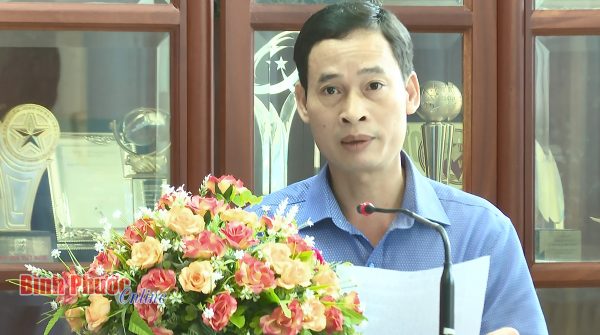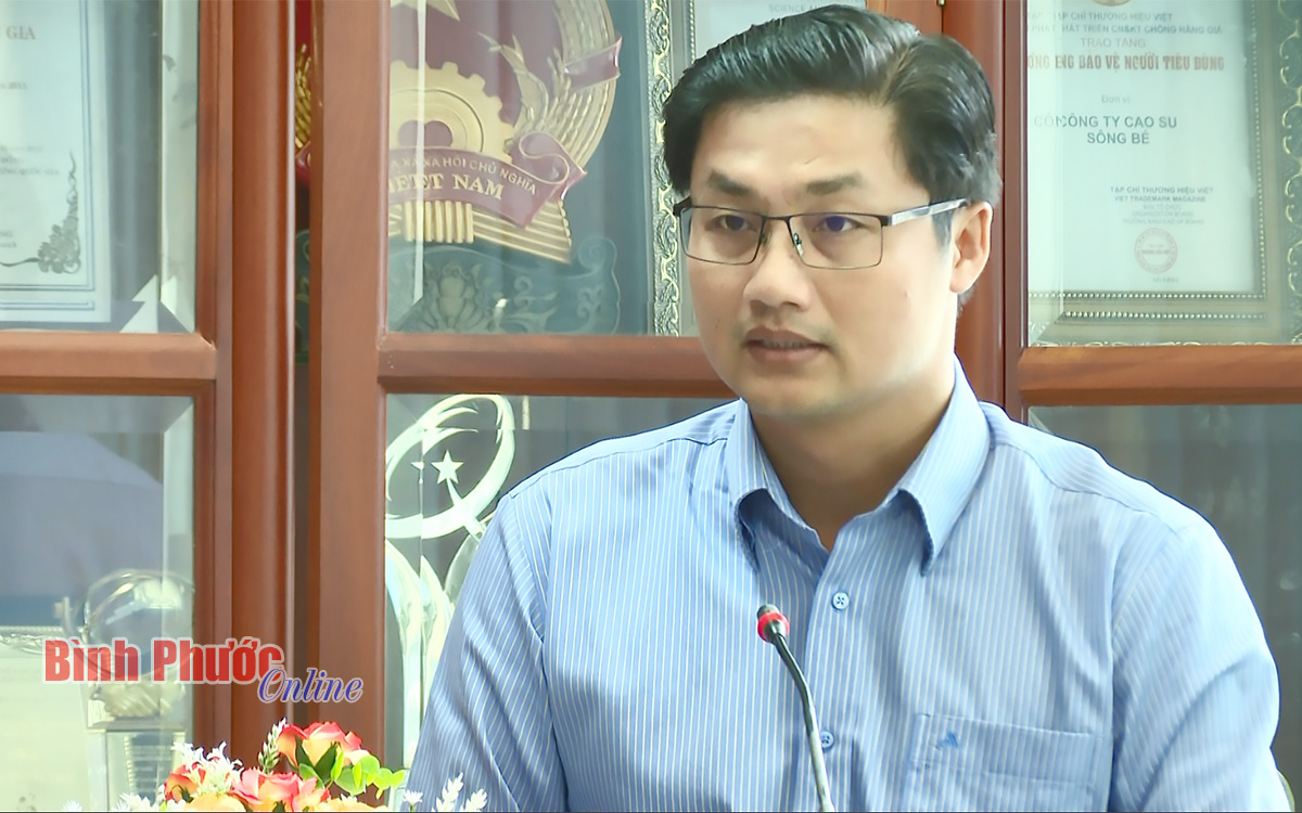 Ông Nguyễn Minh Thiện, Trưởng phòng Tổ chức, Công ty Cổ phần cao su Sông Bé, Khối phó báo cáo tình hình thực hiện nhiệm vụ toàn khối