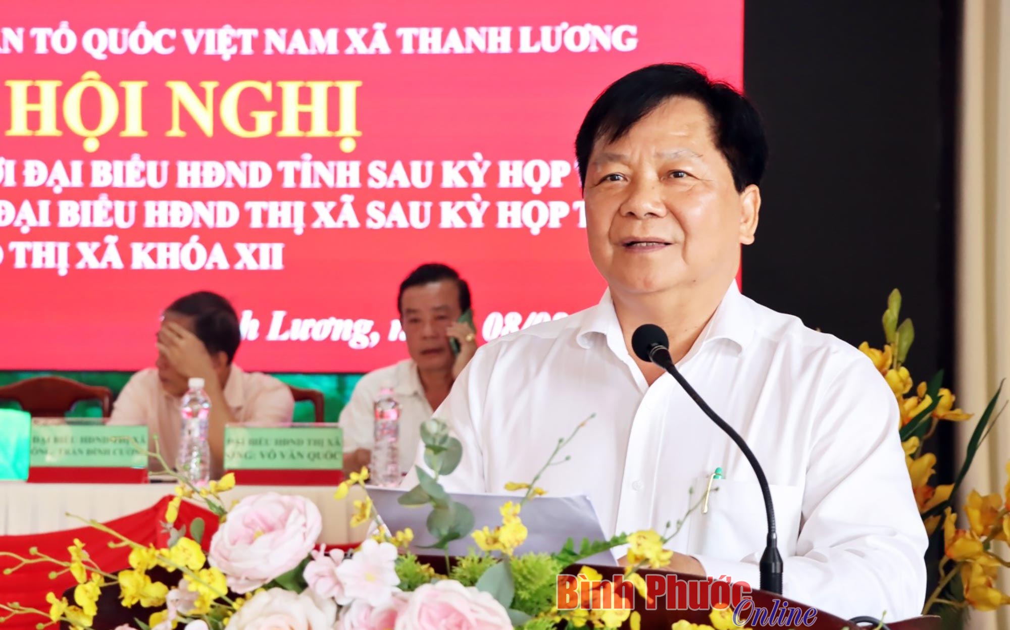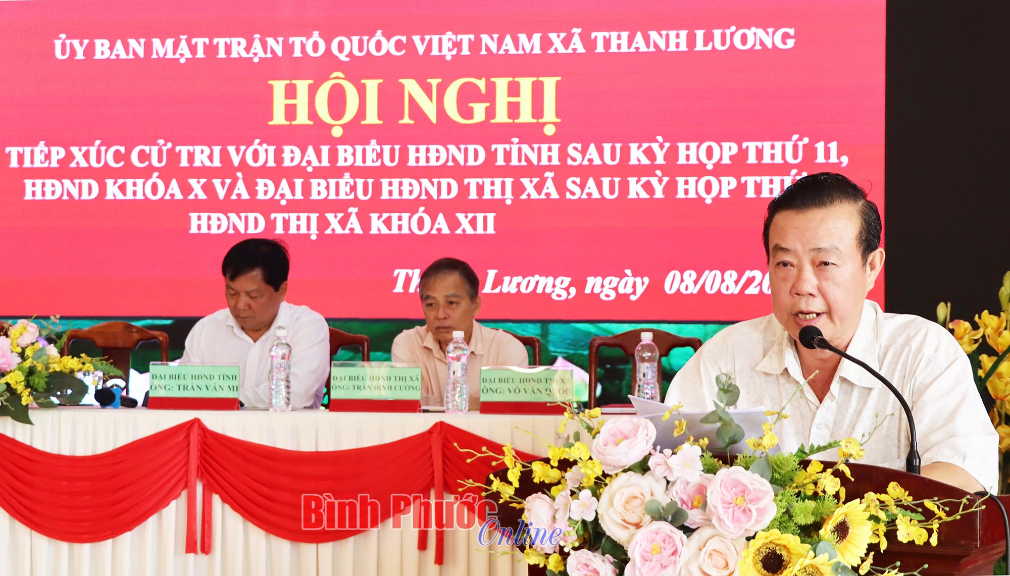 Phó Chủ tịch UBND tỉnh Trần Văn Mi cũng mong muốn cử tri địa phương tiếp tục quan tâm theo dõi và tích cực đóng góp ý kiến thiết thực để các cơ quan chức năng thực hiện tốt nhiệm vụ được giao, góp phần xây dựng Thanh Lương xứng tầm nông thôn mới nâng cao, tiến đến nông thôn mới kiểu mẫu của thị xã Bình Long.