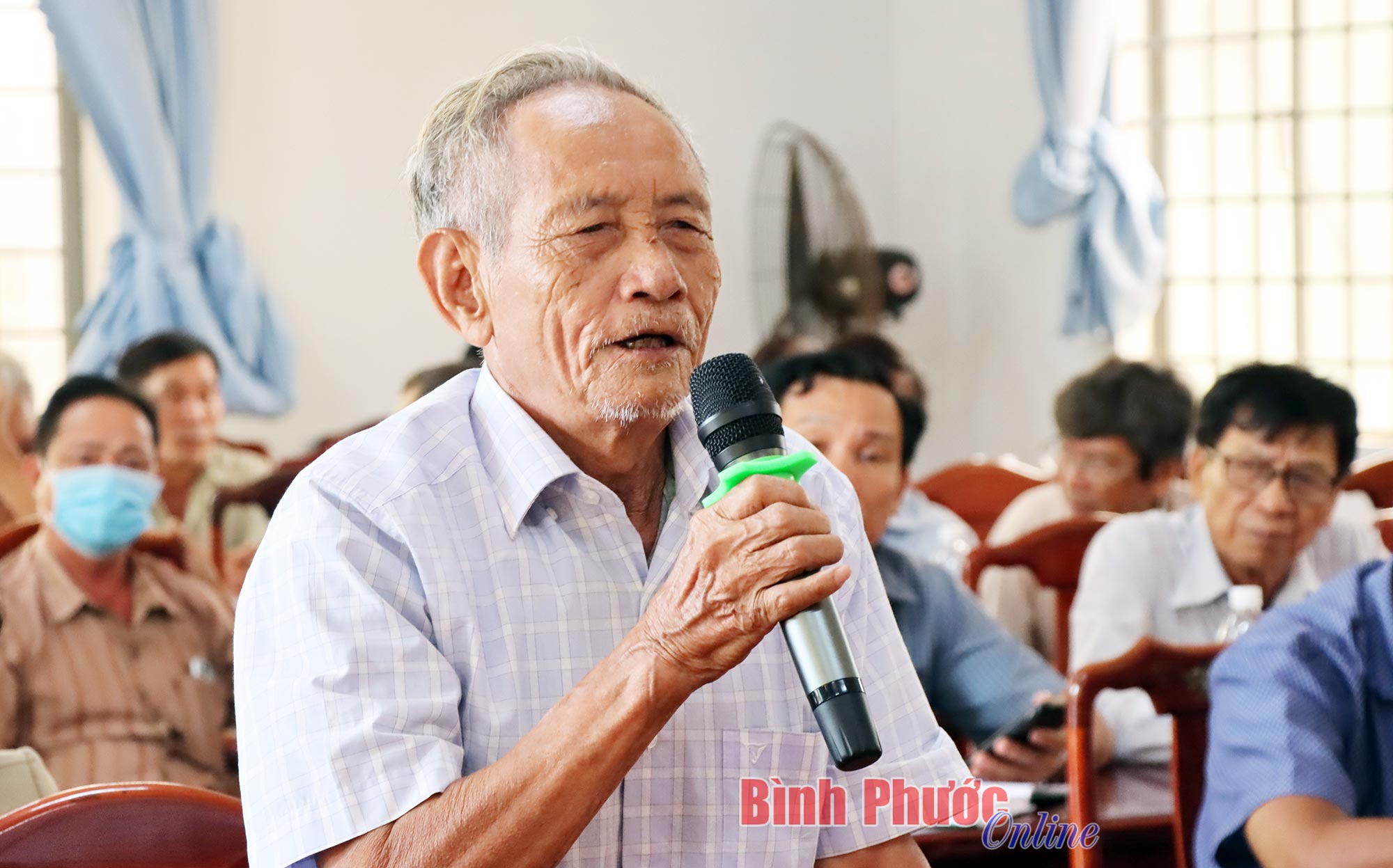 Cử tri cũng bày tỏ bức xúc về các tuyến đường giao thông tại khu vực vùng đệm nhà máy xi măng Bình Phước; việc Xí nghiệp trắc địa bản đồ 305 tổ chức đo đạc lại đất của người dân sai với thông tin ban đầu và quy hoạch hạ tầng giao thông của địa phương, nên người dân ấp Thanh An chưa được cấp quyền sử dụng đất. Đồng thời, phản ánh các bất cập trong việc bắt buộc tham gia mua bảo hiểm và giải quyết đền bù khi xảy ra sự tai nạn giao thông đối với xe gắn máy…