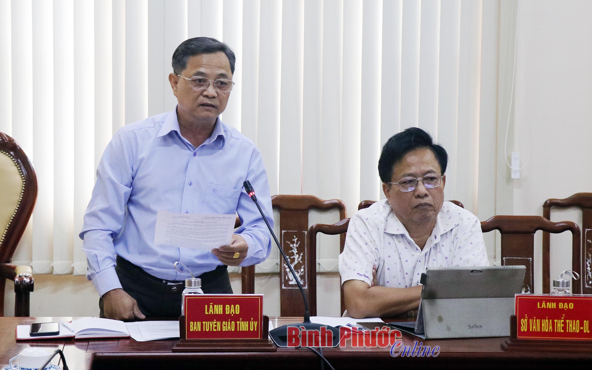 Lãnh đạo Sở Văn hóa, Thể thao và Du lịch báo cáo nhanh tiến độ triển khai các công việc chuẩn bị tổ chức hội nghị