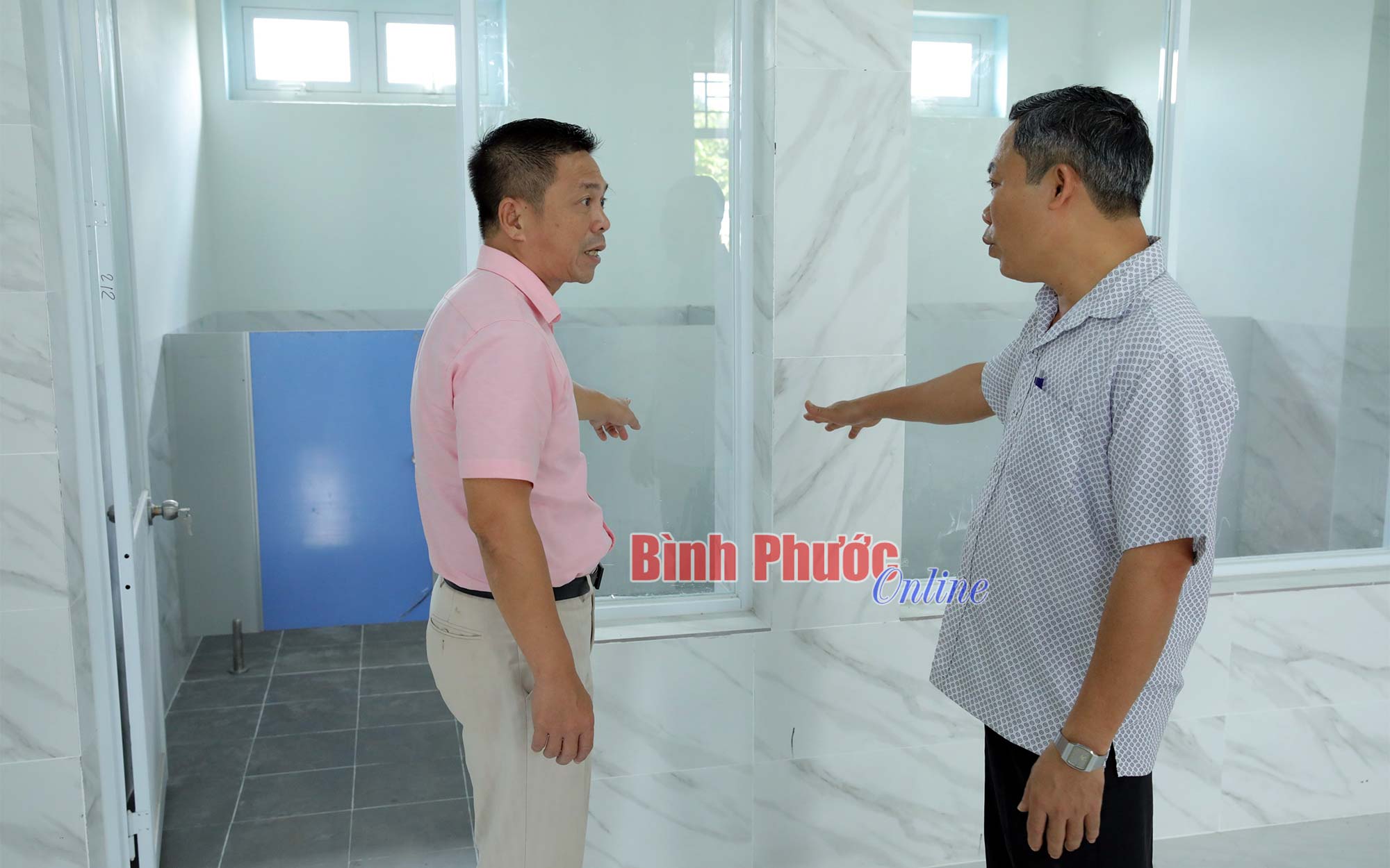 Đoàn khảo sát phòng học xây mới tại Trường Mầm non Thanh Bình