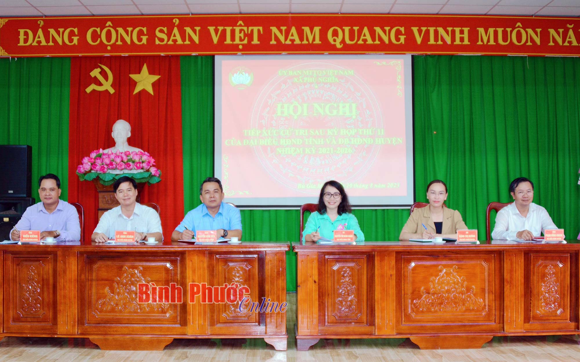 Các đại biểu HĐND tỉnh, huyện tham dự buổi tiếp xúc cử tri xã Phú Nghĩa, huyện Bù Gia Mập