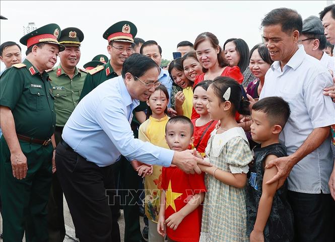 Thủ tướng Phạm Minh Chính thăm hỏi nhân dân vào Lăng viếng Chủ tịch Hồ Chí Minh. Ảnh: Dương Giang/TTXVN
