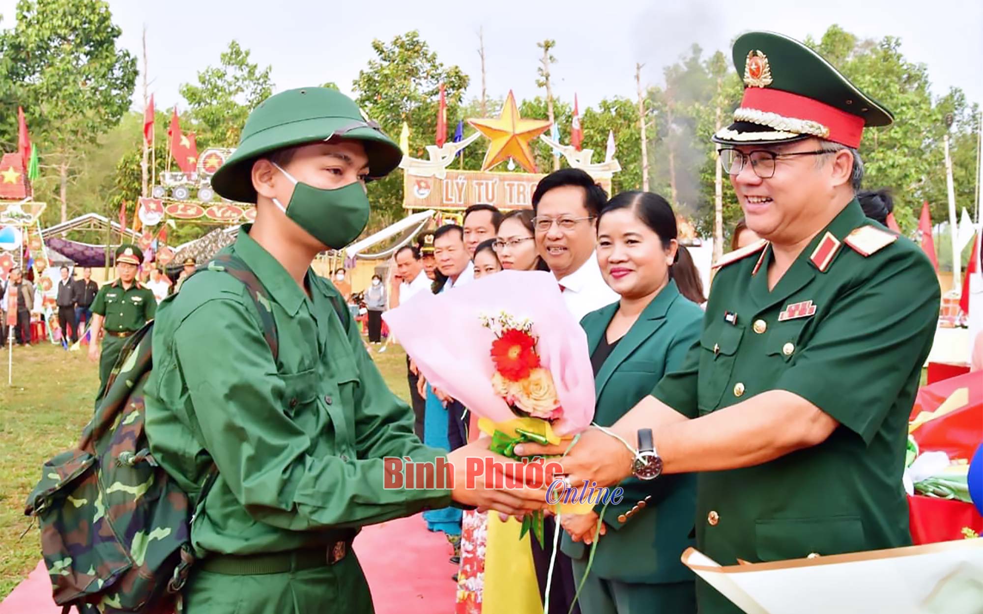Lãnh đạo Bộ Tư lệnh Quân khu 7 và UBND tỉnh tặng quà, hoa cho thanh niên huyện Hớn Quản lên đường nhập ngũ năm 2023