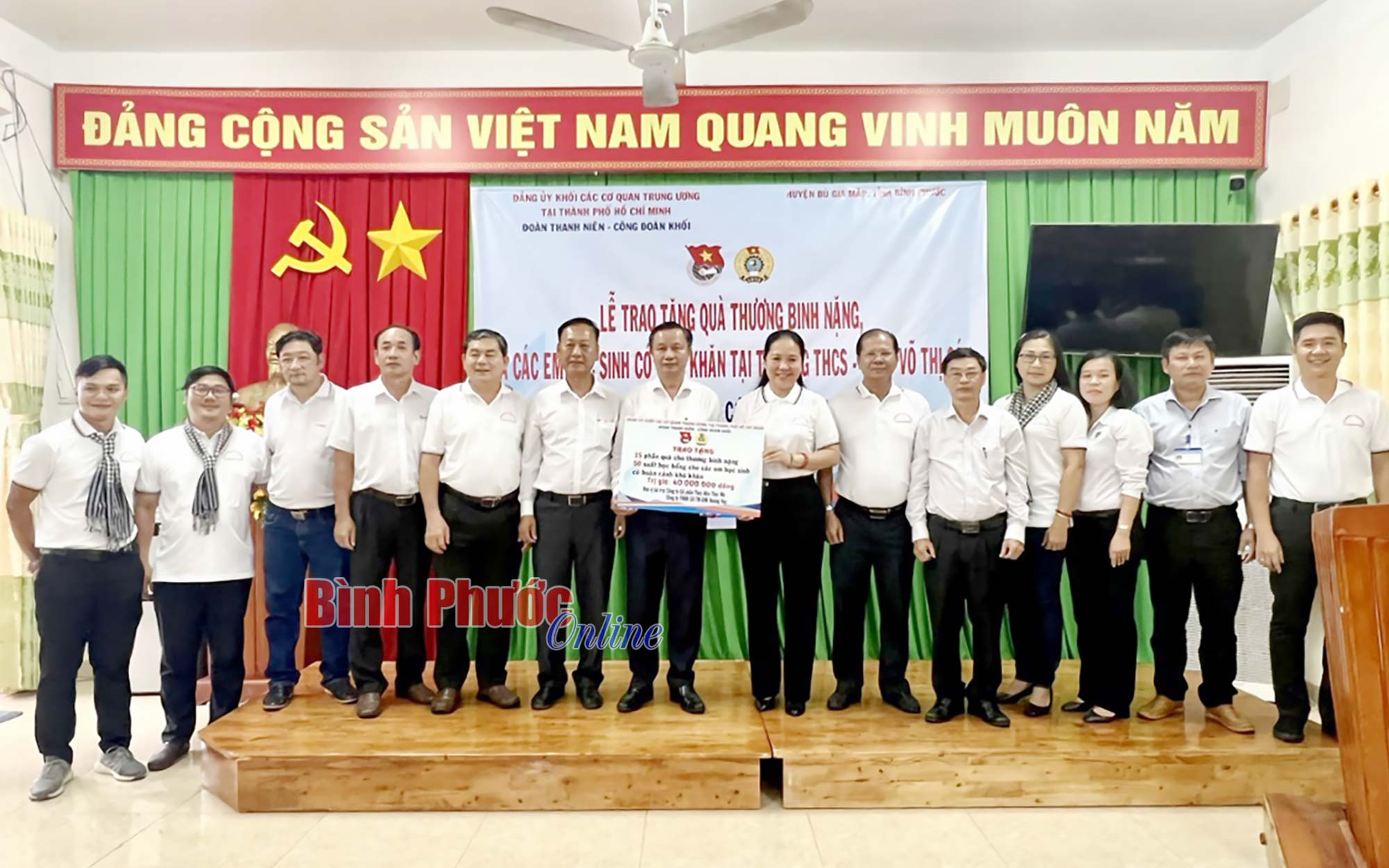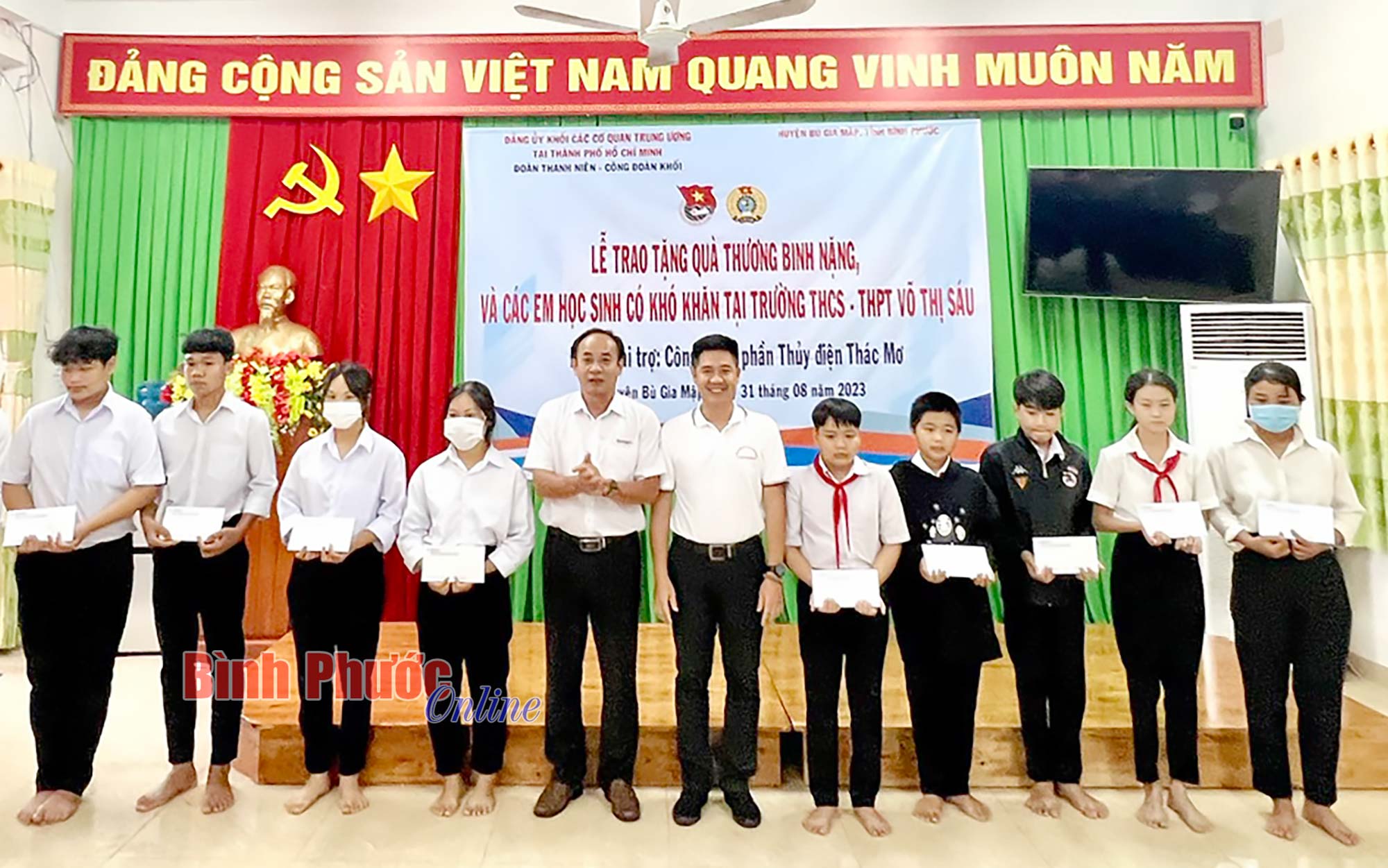 Đoàn tặng quà cho các em học sinh hiếu học tại Trường THCS-THPT Võ Thị Sáu