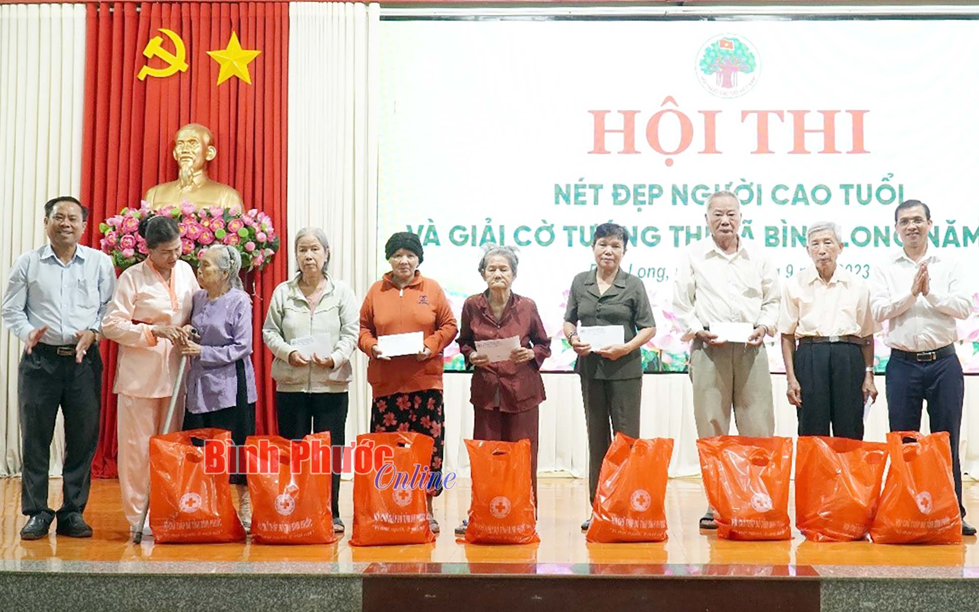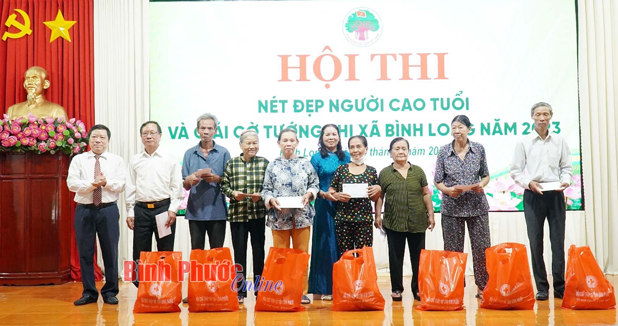 Trước khi diễn ra các nội dung của hội thi, Ban tổ chức đã làm lễ chúc thọ cho 12 cụ từ 70 đến 85 tuổi thuộc Hội NCT các xã, phường và trao quà cho 30 cụ có hoàn cảnh khó khăn.
