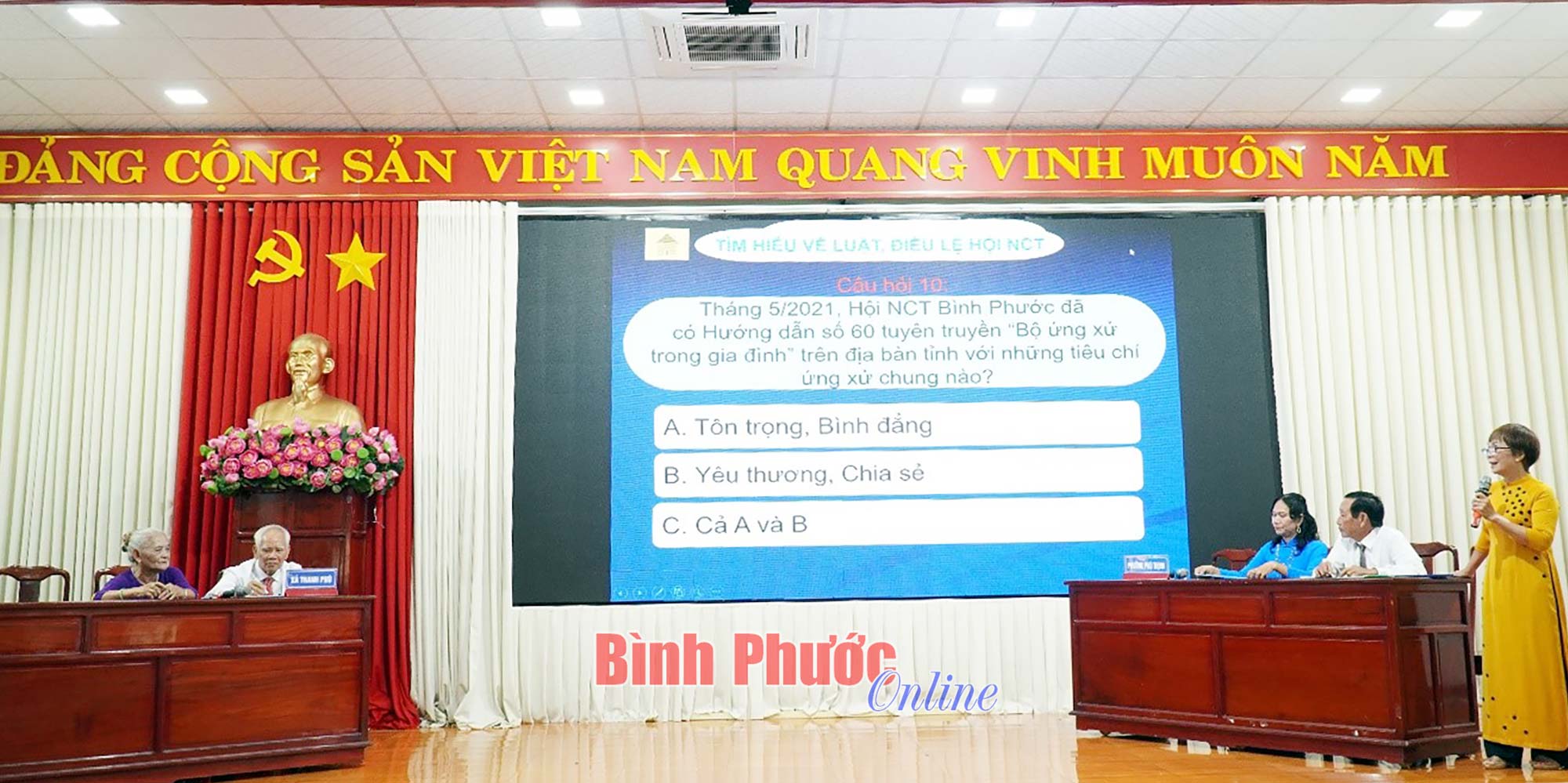 Tham gia hội thi, có 6 đội đến từ Hội NTC của 6 xã phường, mỗi đội cử ra 2 thành viên tham gia các phần thi: giới thiệu và kiến thức. Tại phần thi giới thiệu, các đội giới thiệu về đơn vị, các thành viên của đội mình bằng thơ, hò vè, hát. Trong phần thi kiến thức, các cụ tham gia trả lời những câu hỏi có nội dung liên quan đến Luật NCT và các chính sách có liên quan đến NCT. Bên cạnh đó, các tiết mục giao lưu văn nghệ giữa các đơn vị cũng tạo cho không khí hội thi thêm vui tươi, phấn khởi.
