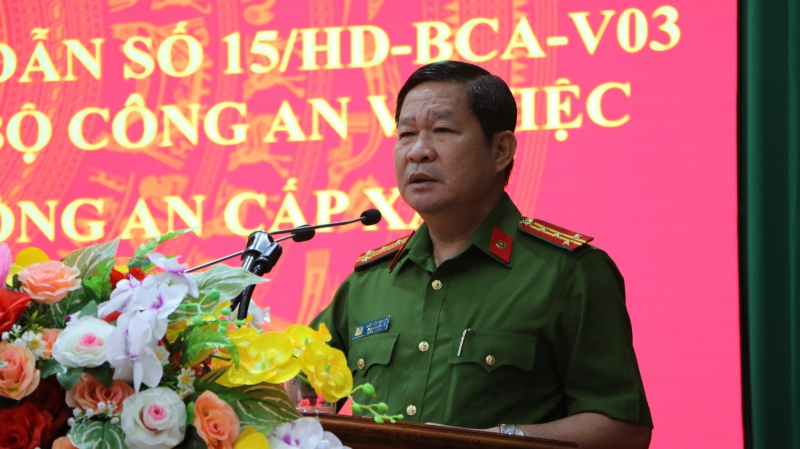 Đại tá Lâm Văn Long, Phó Giám đốc Công an tỉnh Bình Phước phát biểu chỉ đạo tại hội nghị