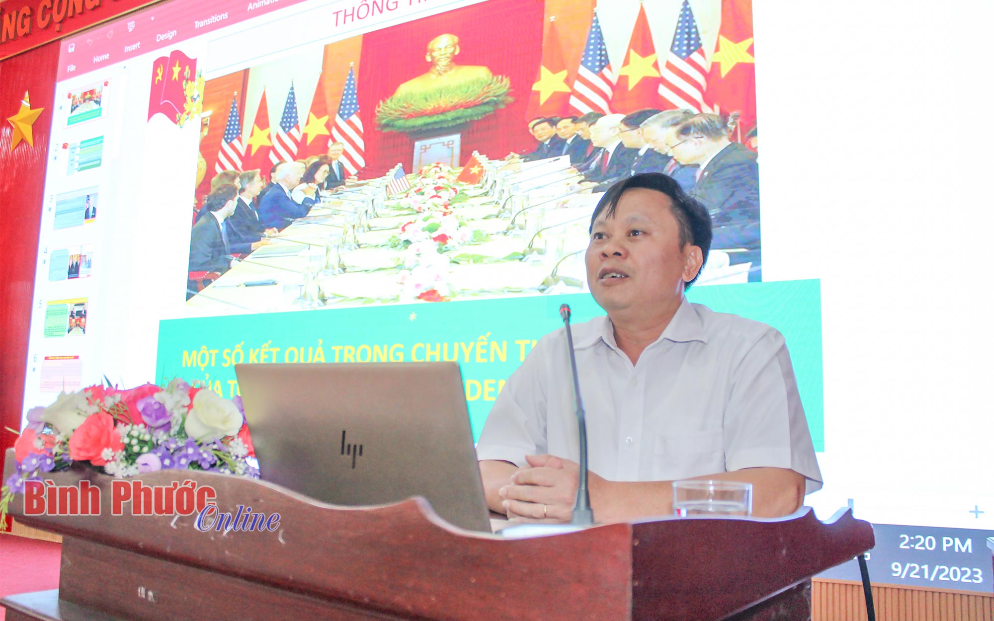 Hội nghị đã thông tin tình hình thời sự trong nước và quốc tế cho gần 200 cán bộ, đảng viên, đảng viên cao tuổi đảng, cán bộ lãnh đạo nghỉ hưu về kết quả chuyến thăm chính thức của Tổng thống Mỹ Joe Biden; kết quả bầu cử Quốc hội và thành lập chính phủ mới ở Camphuchia.