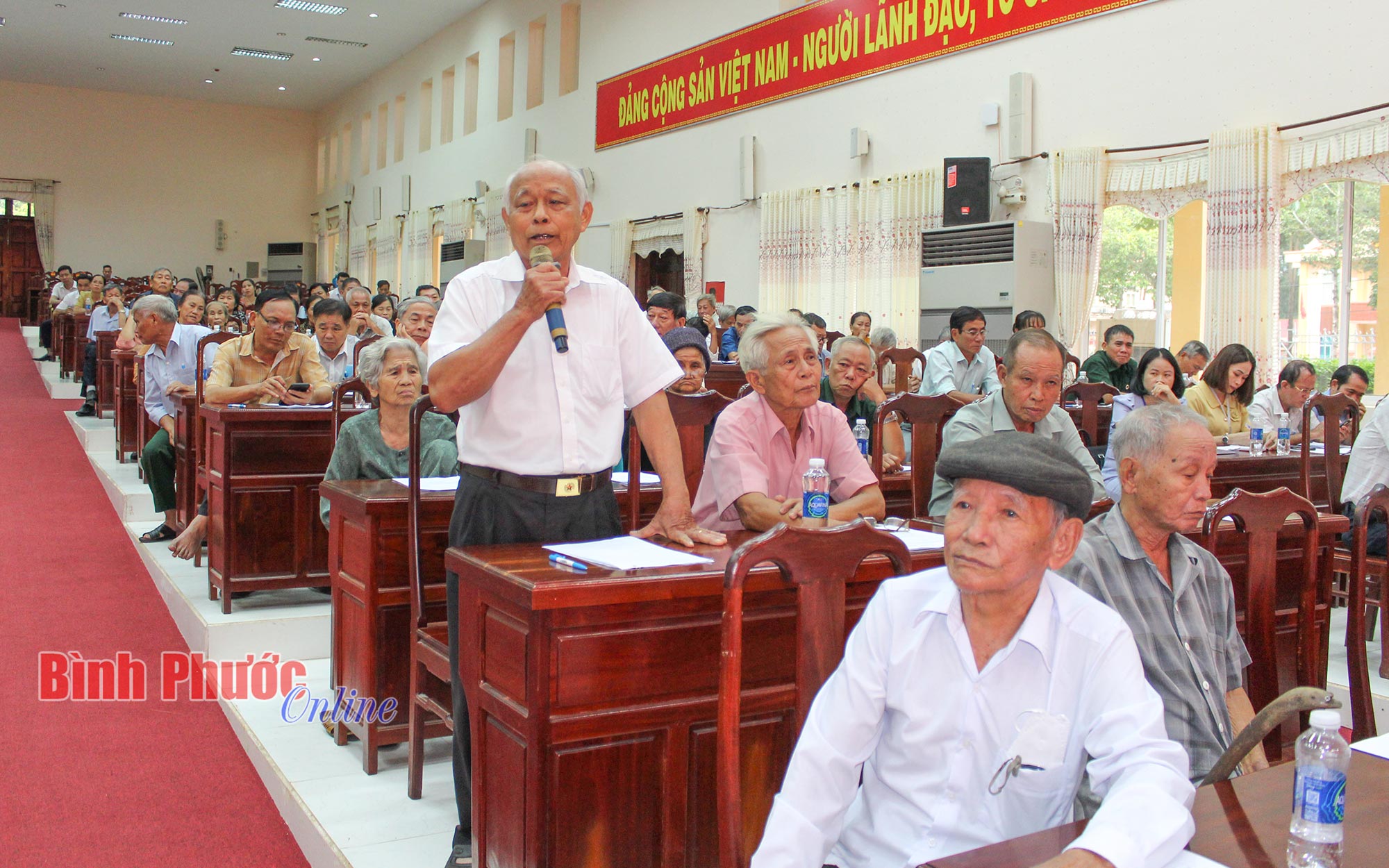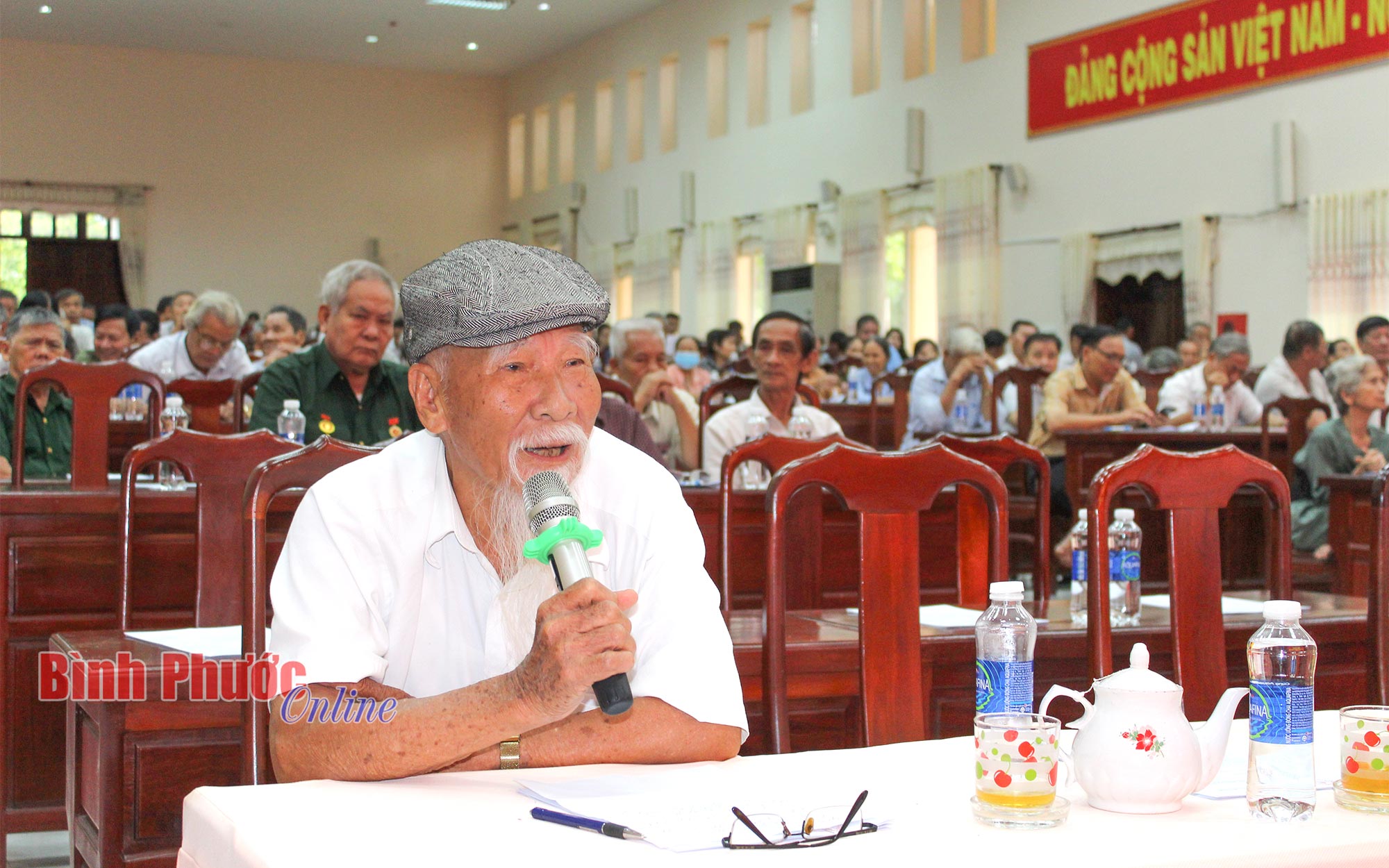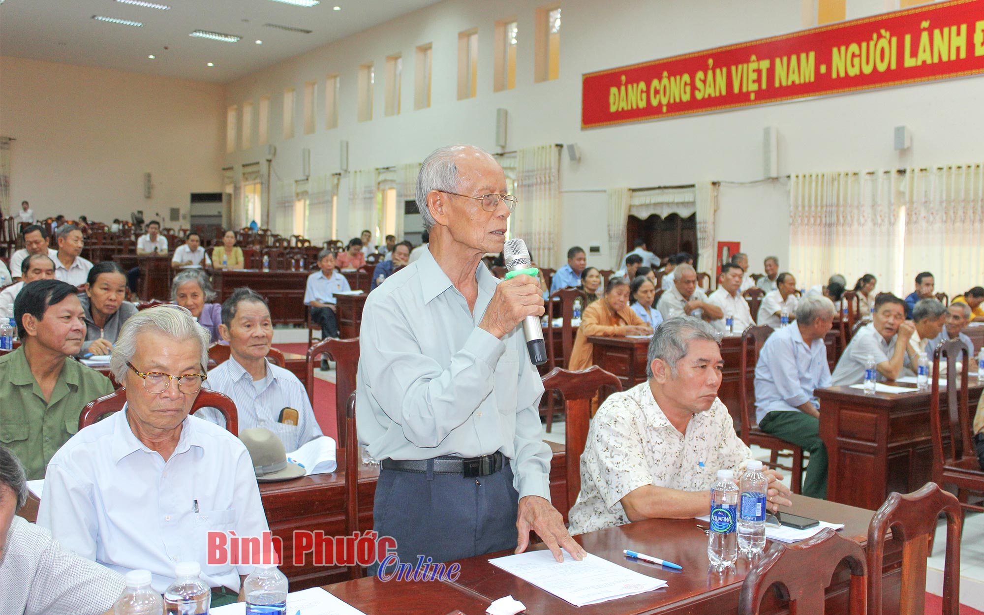 Tại hội nghị, đảng viên cao tuổi đảng đã có nhiều ý kiến góp ý cho công tác lãnh đạo, chỉ đạo điều hành thực hiện nhiệm vụ của cấp ủy, chính quyền về các vấn đề như công tác sinh hoạt chi bộ cơ sở ở thôn, ấp; xây dựng nông thôn mới; tình trạng an ninh nông thôn; quản lý đất công; thu, chi ngân sách các vấn đề chính sách cho cán bộ hưu trí…