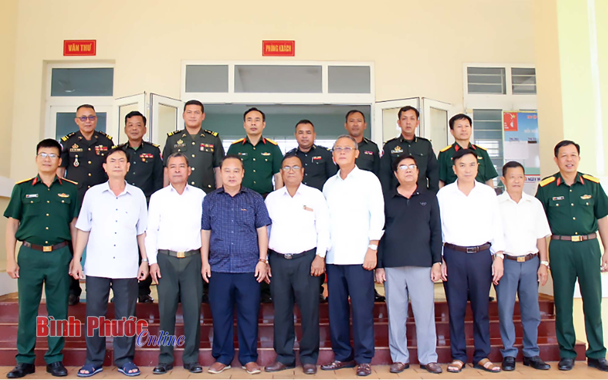 Đoàn công tác của Tiểu đoàn 4 biên phòng và Chi khu Quân sự huyện Snuol, tỉnh Kratie, Vương quốc Campuchia chụp hình lưu niệm với lãnh đạo và nguyên lãnh đạo Bộ Chỉ huy Quân sự tỉnh Bình Phước và huyện Phú Riềng