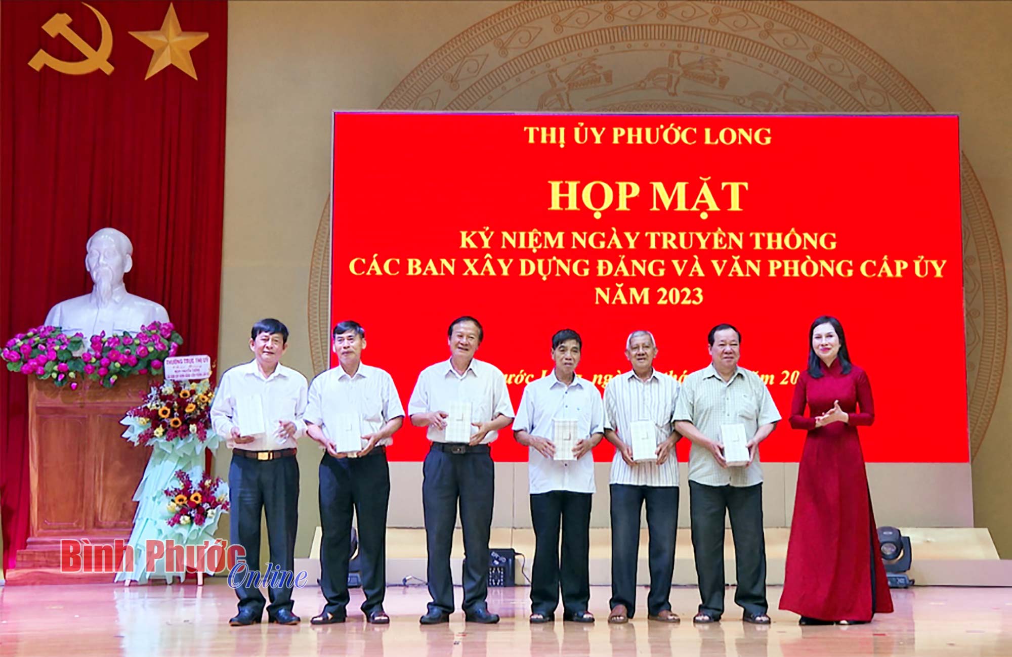 Dịp này, Thị ủy Phước Long đã trao lẵng hoa chúc mừng lãnh đạo các Ban xây dựng Đảng và Văn phòng cấp ủy; tặng quà tri ân cho các các cán bộ nguyên là Thường trực, Ban Thường vụ Huyện, Thị ủy Phước Long qua các thời kỳ, nguyên lãnh đạo các Ban xây dựng Đảng và Văn phòng cấp ủy, Trung tâm chính trị trên địa bàn thị xã đã nghỉ hưu. Đồng thời, trao lẵng hoa chúc mừng Ngày Phụ nữ Việt Nam 20-10 cho các chị em phụ nữ đã nghỉ hưu cũng như đang công tác tại các Ban xây dựng Đảng và Văn phòng cấp ủy, Trung tâm chính trị thị xã.