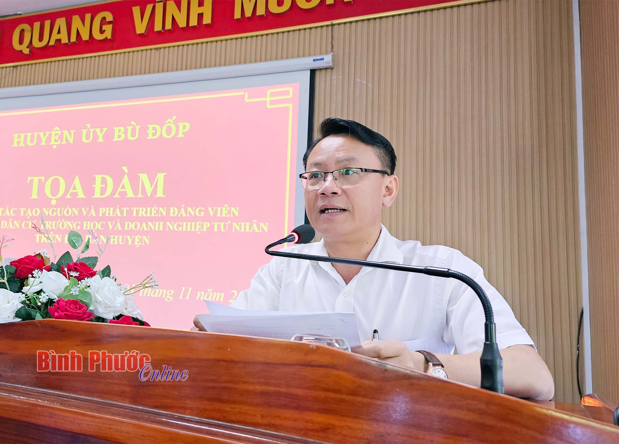 Hội nghị chuyên đề tọa đàm công tác tạo nguồn và phát triển đảng viên trong khu dân cư, trường học và doanh nghiệp tư nhân trên địa bàn huyện Bù Đốp
