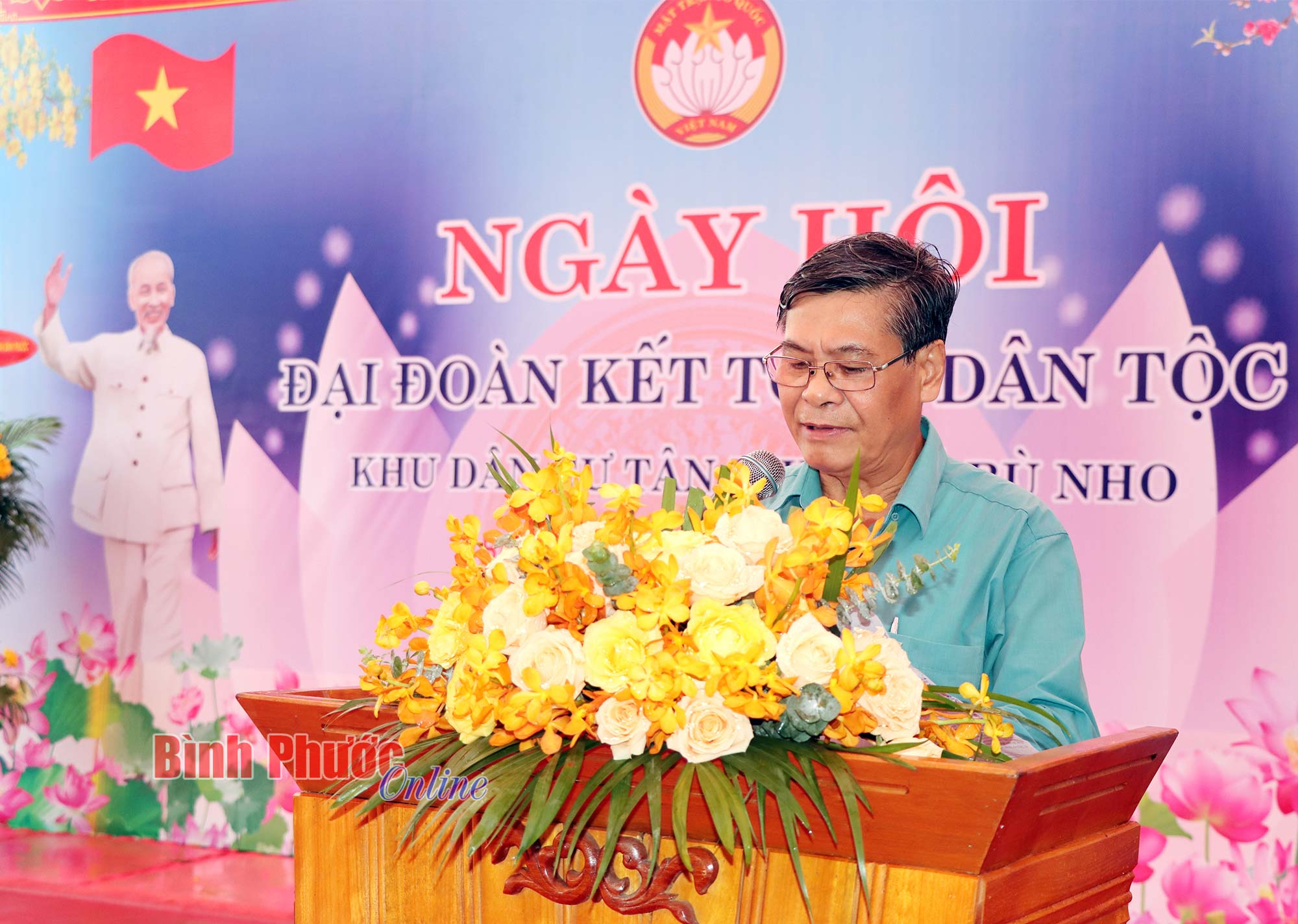 Phó Chủ tịch Ủy ban MTTQ VN tỉnh Nguyễn Thanh Bình phát biểu trong ngày hội đại đoàn kết toàn dân tộc tại xã Bù Nho