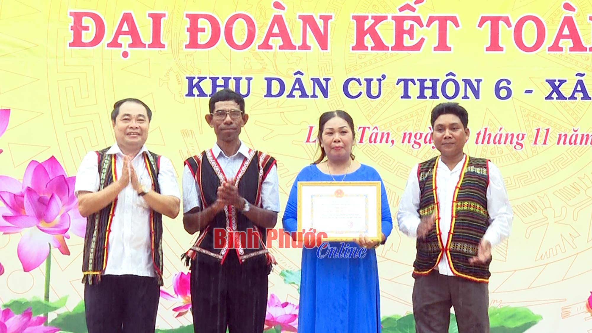 Phó Chủ tịch UBND huyện Phú Riềng Bùi Văn Hiếu mong muốn thời gian tới, tất cả người dân ở khu dân cư thôn 6 tiếp tục đẩy mạnh việc củng cố và mở rộng khối đại đoàn kết toàn dân, nâng cao chất lượng cuộc vận động "Toàn dân đoàn kết xây dựng nông thôn mới, đô thị văn minh”.