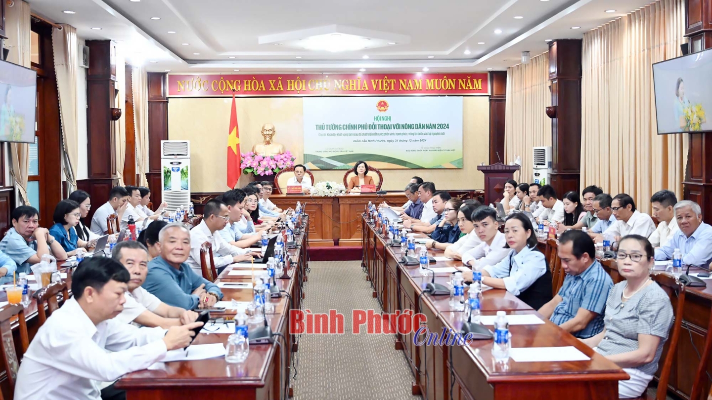 Tại điểm cầu Bình Phước, Ủy viên Ban Thường vụ Tỉnh ủy, Phó Chủ tịch UBND tỉnh Trần Tuyết Minh và Chủ tịch Hội Nông dân tỉnh Trần Văn Vinh chủ trì hội nghị.