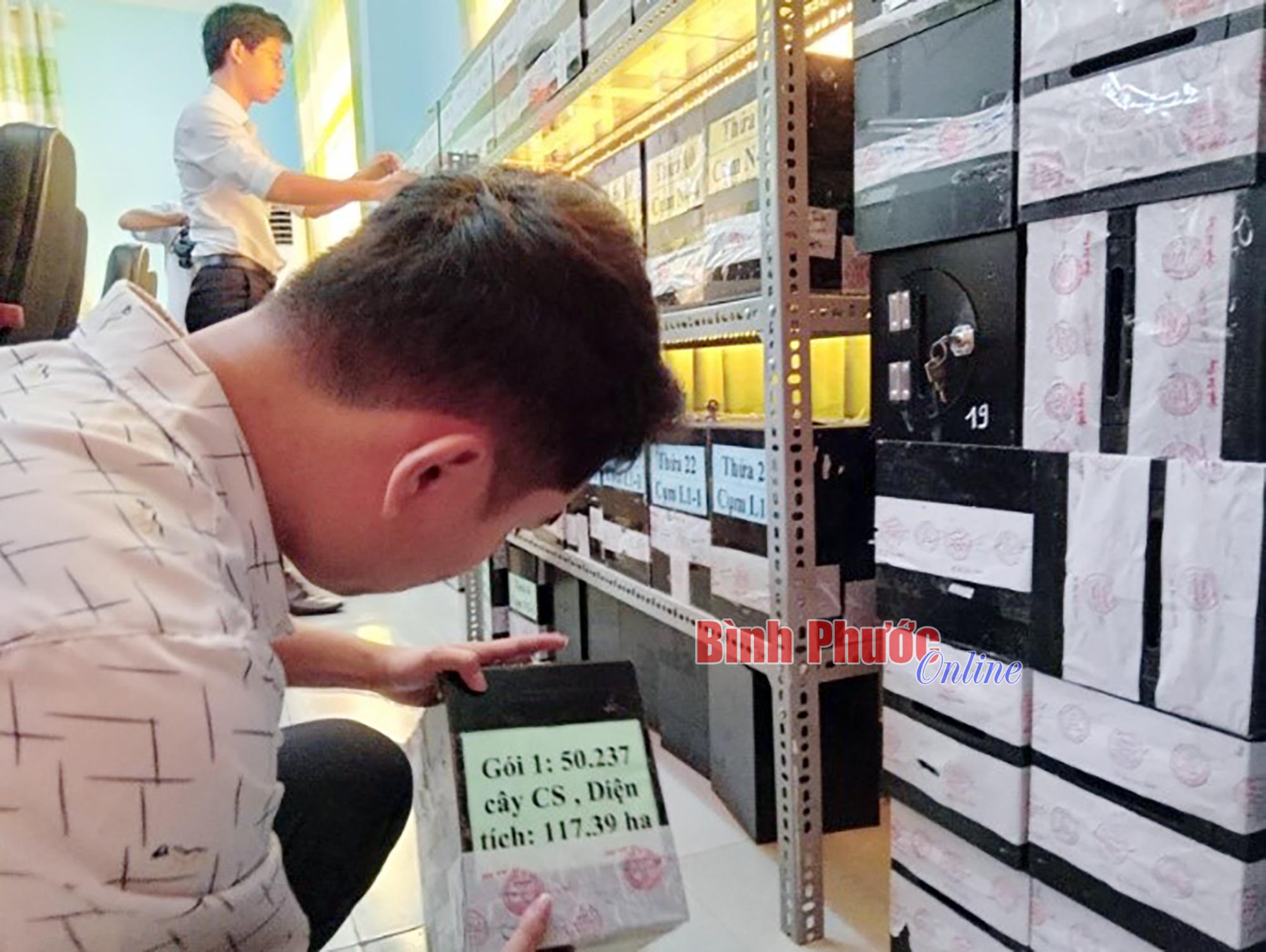 Nhân viên Trung tâm Dịch vụ đấu giá tài sản tỉnh Bình Phước kiểm tra các thùng phiếu