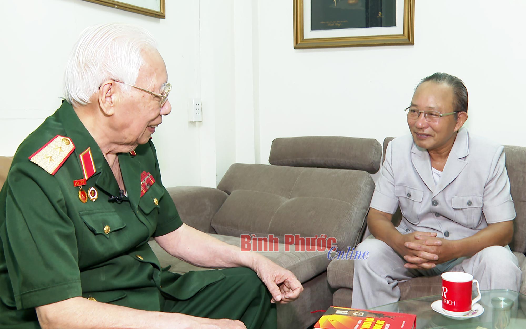 Cựu chiến binh Đặng Phúc Định (phải) mong muốn Đảng và Nhà nước có những giải pháp chống tham nhũng hiệu quả, góp phần giữ vững thành quả cách mạng và củng cố niềm tin của nhân dân. Trong ảnh: Cựu chiến binh Đặng Phúc Định trao đổi với Trung tướng Nguyễn Văn Thái về những chiến công oanh liệt của bộ đội Cụ Hồ để làm nên chiến thắng năm 1975