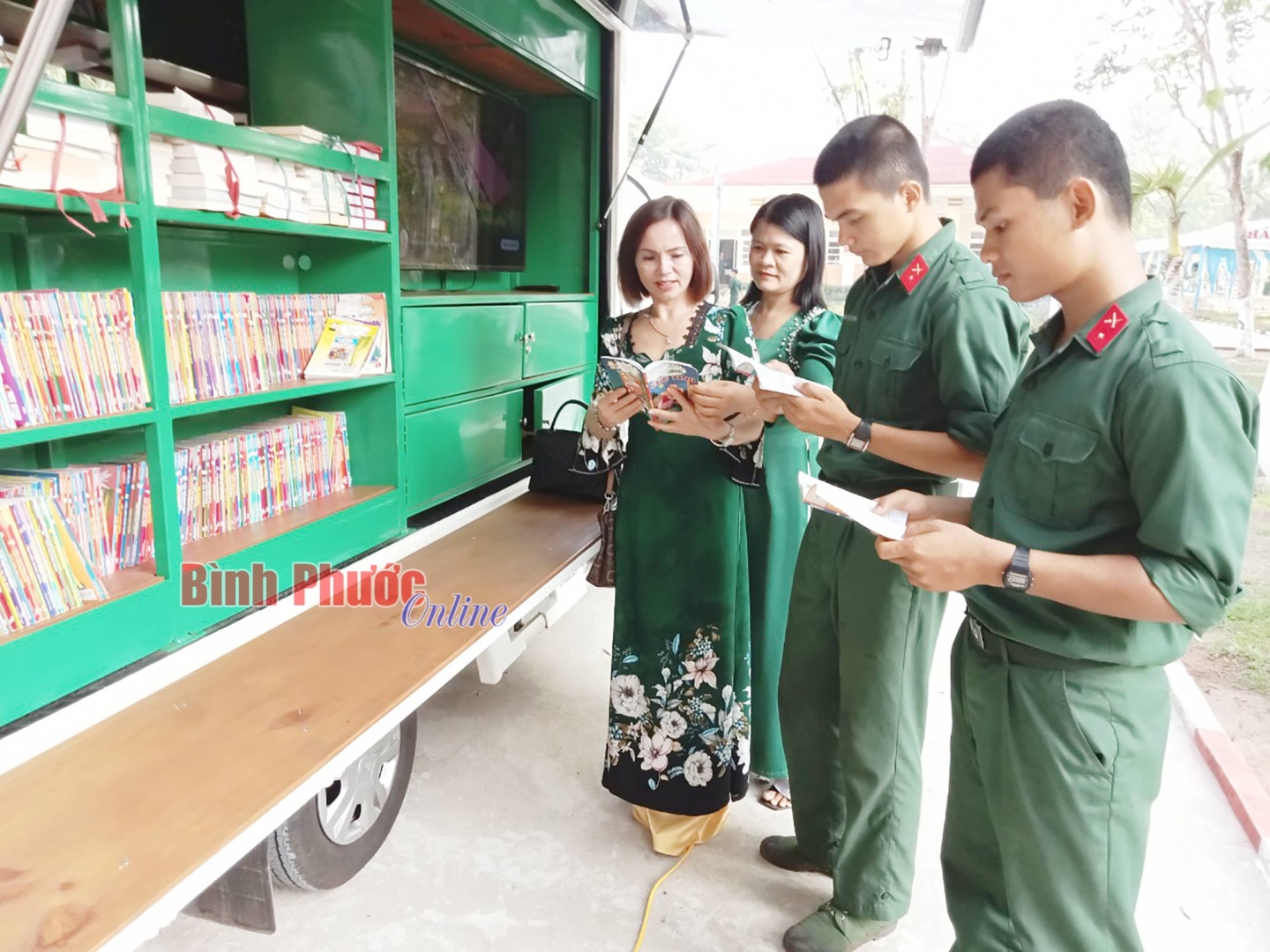 Bộ CHQS tỉnh phối hợp với Thư viện tỉnh tổ chức Ngày Sách và Văn hóa đọc Việt Nam năm 2023 tại Tiểu đoàn 208, Trung đoàn 736 - Ảnh: Văn Minh