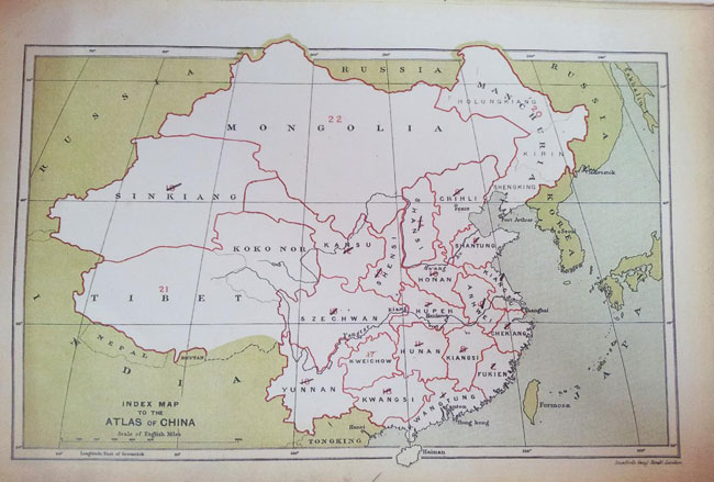 Bản đồ Trung Quốc trong cuốn Atlas Trung Quốc địa đồ năm 1908 cũng thể hiện cực nam Trung Quốc chỉ đến đảo Hải Nam.