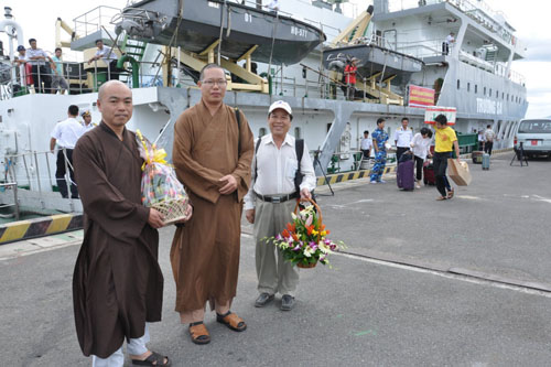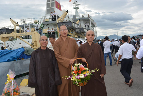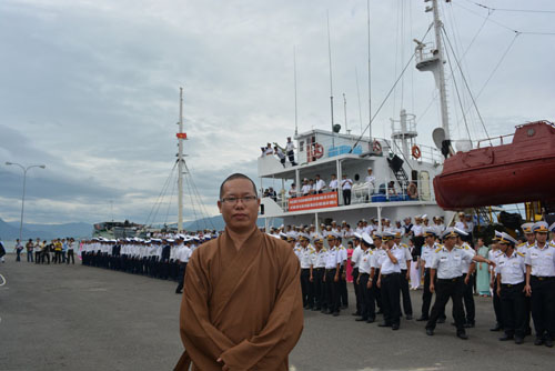 Chiều xuất phát ra Trường Sa (21-12-2013), giữa đông đặc quân phục Hải, Lục, Không quân trên cầu cảng căn cứ Cam Ranh (Khánh Hòa), chợt nổi trội bóng áo nâu, áo vàng của một nhóm các nhà sư, cũng lỉnh kỉnh đồ đạc, đi từ ngoài vào cảng, lên tàu.