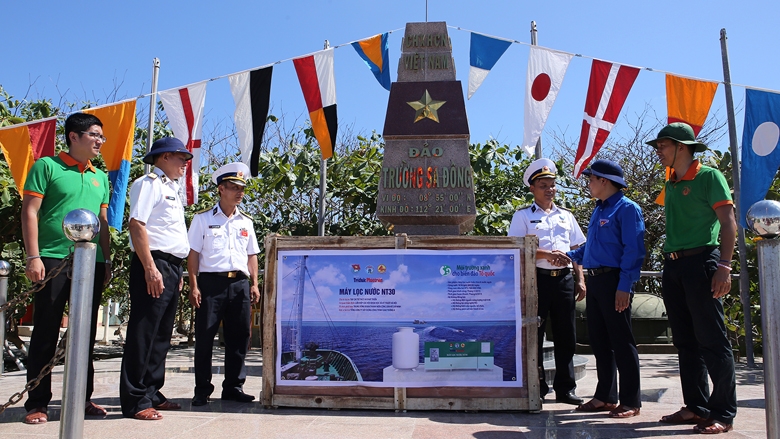 Lễ bàn giao thiết bị lọc nước NT-30 tại đảo Trường Sa Đông - Ảnh: Internet