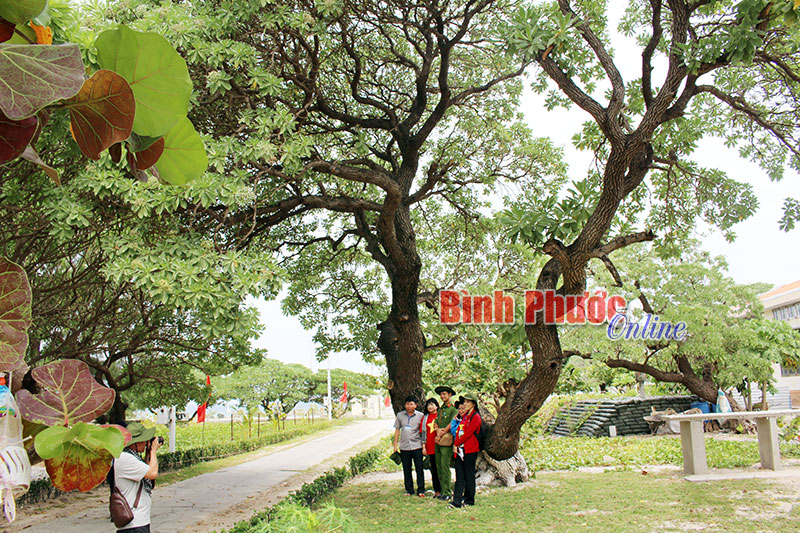 Ở Trường Sa, cây trồng chủ yếu là bàng vuông và tra. Đặc biệt, cây tra vừa cho bóng mát vừa có hương thơm. Lá và hoa của cây tra gần giống lá và hoa của cây hoa sữa. Tuy nhiên, để có được những cây tra đẹp, cán bộ, chiến sĩ trên các đảo phải tốn nhiều công sức chăm sóc, tạo dáng. Trong ảnh: Cây tra cổ thụ trong khuôn viên xanh, sạch, đẹp ở đảo Song Tử Đông.