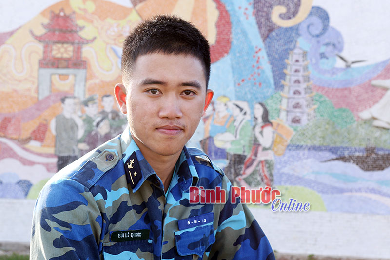 Thiếu úy Bùi Lê Quang, hiện là thành viên thủy thủ đoàn tàu Quân y 561. Nối tiếp truyền thống gia đình, năm 2015, Quang nhập ngũ bảo vệ Tổ quốc. Chàng thanh niên sinh năm 1996, quê ở thị xã Đồng Xoài đã nỗ lực đạt nhiều thành tích tốt, được cấp trên tuyển chọn đi học tại Trường cao đẳng kỹ thuật Hải quân. Ra trường, Quang được điều động về nhận công tác trên con tàu Quân y 561.