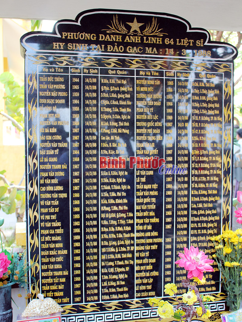 Ở các ngôi chùa trên quần đảo Trường Sa đều có ban thờ các anh hùng, liệt sĩ đã hy sinh vì sự nghiệp bảo vệ vững chắc vùng trời, vùng biển của Tổ quốc ở Trường Sa. Trong ảnh: Ban thờ 64 liệt sĩ hy sinh tại đảo Gạc Ma ngày 14-3-1988, tại chùa Sinh Tồn.