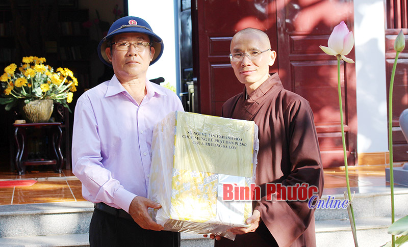 Mỗi lần ra thăm quần đảo Trường Sa, các đoàn công tác đều đến thăm và tặng quà các chùa. Trong ảnh: Đại diện Sở Nội vụ tỉnh Khánh Hòa tặng quà chùa Trường Sa Lớn.
