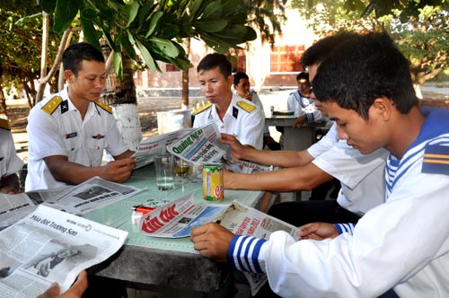 Cán bộ, chiến sĩ hải quân đọc báo hàng ngày. |