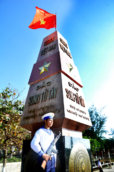 Cột mốc chủ quyền đảo Song Tử Tây. |