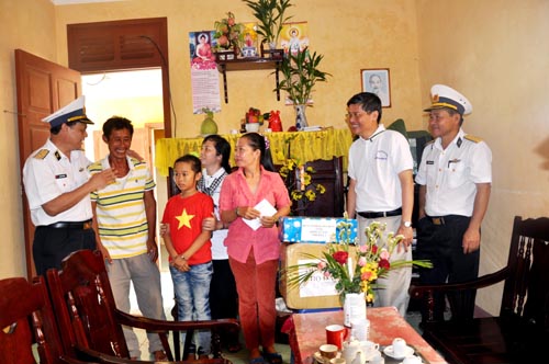 Đoàn công tác đến thăm tặng quà cho gia đình anh Nguyễn Hồng Thưởng sinh sống trên xã đảo. |