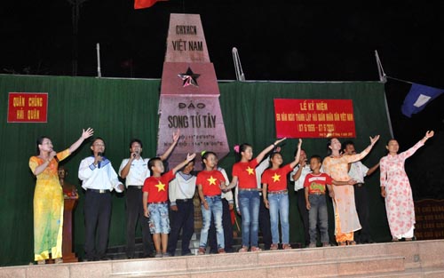 Cán bộ, quân và dân trên đảo tham gia chương trình văn nghệ. |
