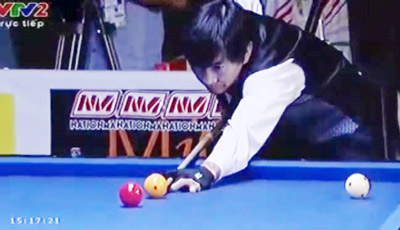 ![]() Cơ thủ Đặng Đình Tiến trong lượt cơ quyết định chiến thắng ở trận chung kết. |