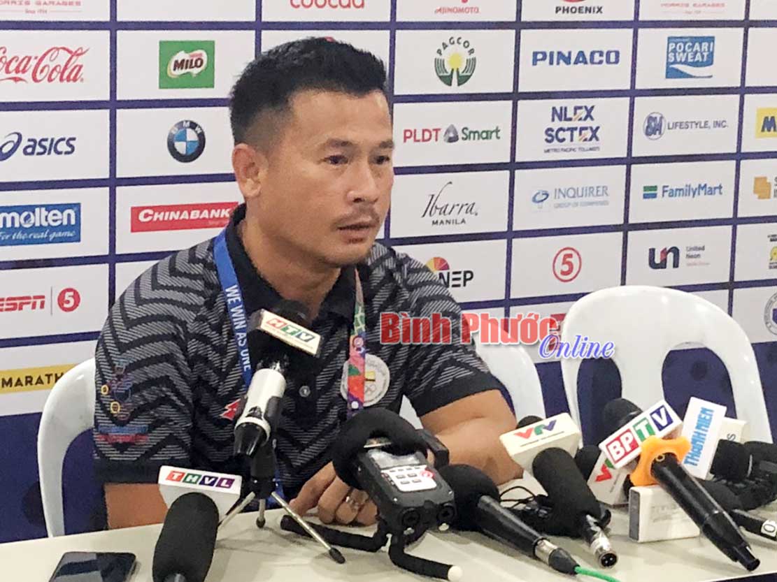 HLV đội bạn brunei phát biểu họp báo sau trận đấu. Ảnh - Hưng Cát