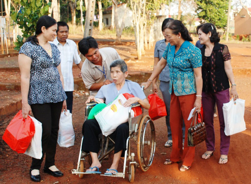Quan tâm chăm lo tết cho người nghèo và gia đình chính sách là một phần trong chính sách an sinh xã hội, đồng thời là động lực giúp người nghèo vươn lên trong cuộc sống. Chị Đào Thị Xuân ở ấp 3, xã Tiến Thành (TX. Đồng Xoài) gắn bó với người nghèo nhiều năm cho biết, trước tết một tháng, chị phối hợp với các tổ chức xã hội chuẩn bị 200 phần quà, gồm gạo, mắm muối, dầu ăn, bánh kẹo và bao lì xì. Nơi các chị đến không chỉ là người nghèo, trẻ khuyết tật mà cả những cụ già neo đơn ở trại dưỡng lão. Có sự quan tâm của cộng đồng nên các cụ vui lắm! Tuổi già cũng chỉ mong có vậy, các chị đến mang theo quà và gói cả tình yêu thương trong đó. Các chị cùng nhau dọn vệ sinh, nấu bữa cơm đầm ấm. “Hạnh phúc chính là sự nhân lên của niềm vui, nụ cười mà mỗi người mang tặng cho nhau. Không phải cứ mai, đào nở mới là xuân. Xuân ở đây là tình người mang đến cho nhau. Khi người nghèo nở nụ cười hạnh phúc, đó là mùa xuân hạnh phúc” - chị Xuân chia sẻ.