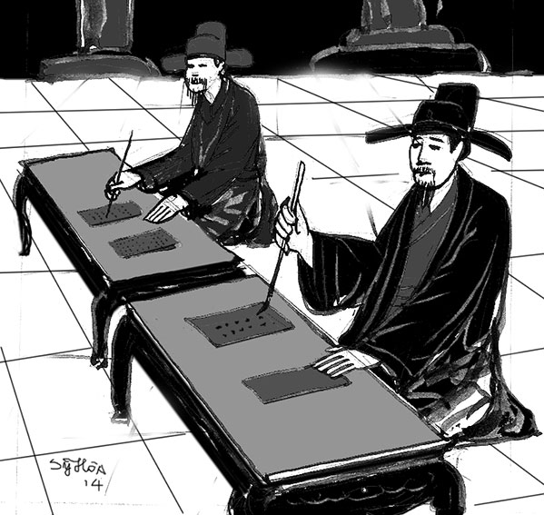 - Hai sứ thần hãy viết tên 100 danh thần của Trung Quốc vào chiếc thẻ, ai viết xong trước sẽ được phong là Lưỡng quốc danh thần (Quan giỏi hai nước), bằng không chỉ là Độn thần (Quan ngu dốt).