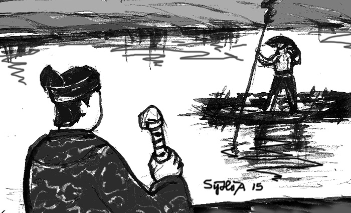 Lúc đó, có cô bán rượu xinh đẹp, ăn nói có duyên, người làng Lủ (Kim Lũ) gần bên sông Tô Lịch thường mang rượu, bánh đến bán cho lính canh ngục. Thấy Lê Chiêu Tông bị giam, cô đã chuốc rượu cho quân canh, chờ dịp lẻn vào tình tự với vua. Khi được tin cô đã có thai, vua Chiêu Tông lén giao cho cô chiếc ấn ngọc làm dấu tích và dặn trốn đi, sau này sinh con trai sẽ có ngày phục thù. Sau đó, nhà vua bị họ Mạc giết chết, cô gái làng Lủ lánh đi nơi khác, sinh ra con trai, đặt tên là Chổm.