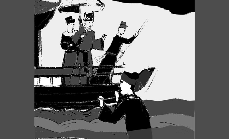 Trong lúc vận nước lâm nguy, dân cần có người trấn an thì Thượng hoàng Trần Nghệ Tông đã vội vã lên thuyền ngự, bỏ chạy lên mạn Đông Ngàn (Bắc Giang). Ngay lúc đó, có người học trò là Nguyễn Mộng Hoa thấy vậy thì tức lắm, liền liều mạng mặc nguyên áo mũ mà lội xuống nước, đưa tay giữ thuyền ngự, khẩn thiết xin Thượng hoàng Nghệ Tông ở lại chỉ huy quan quân đánh giặc, chớ nên vội đi lánh nạn mà làm nản lòng người. Mặc dù vậy nhưng Thượng hoàng Trần Nghệ Tông vẫn cho thuyền đi gấp, không đếm xỉa gì đến lời của Nguyễn Mộng Hoa. Mãi đến 6 tháng sau, Thượng hoàng Nghệ Tông mới trở lại kinh đô Thăng Long. Trong khoảng thời gian 6 tháng đó, Nghệ Tông chỉ biết vui thú ở vùng Tiên Du (Bắc Ninh), cùng đám hầu cận để viết bộ sách Bảo Hòa dư bút gồm 8 quyển, nói là dùng vào việc dạy bảo quan gia, tức vua Trần Phế Đế, khi ấy mới 16 tuổi.