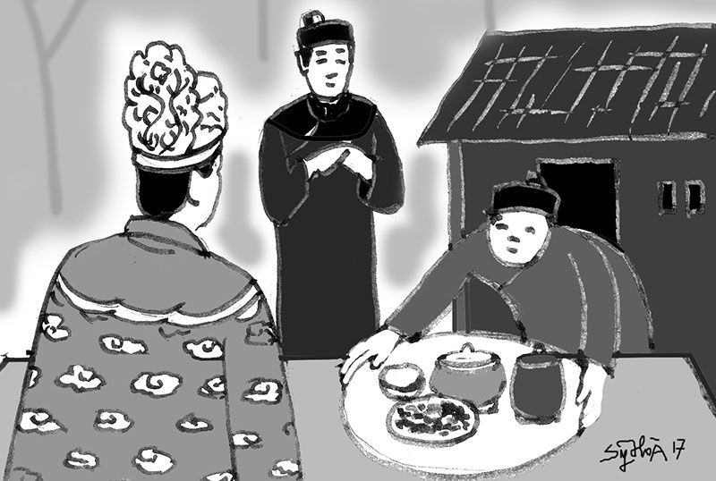 Gia nhân dạ ran, rồi bê cái mâm lên. Bữa xoàng, có một phạng cơm với rau muống luộc và một chiếc hũ sành. Chúa thấy ngoài chiếc hũ dán mảnh giấy hồng điều đề hai chữ “đại phong”. Chúa ăn cơm rau chấm nước “đại phong” ngon lành, chỉ một loáng lại đưa bát cho trạng xới tiếp. Chúa nghĩ bụng, chắc món này cũng quý hiếm đặc biệt nên thấy trạng giữ gìn chiếc hũ cẩn thận. Có lần rau đã hết nước chấm, mãi mới thấy trạng cẩn thận đỡ miệng hũ, múc thêm mấy muôi nhỏ “đại phong” nữa...